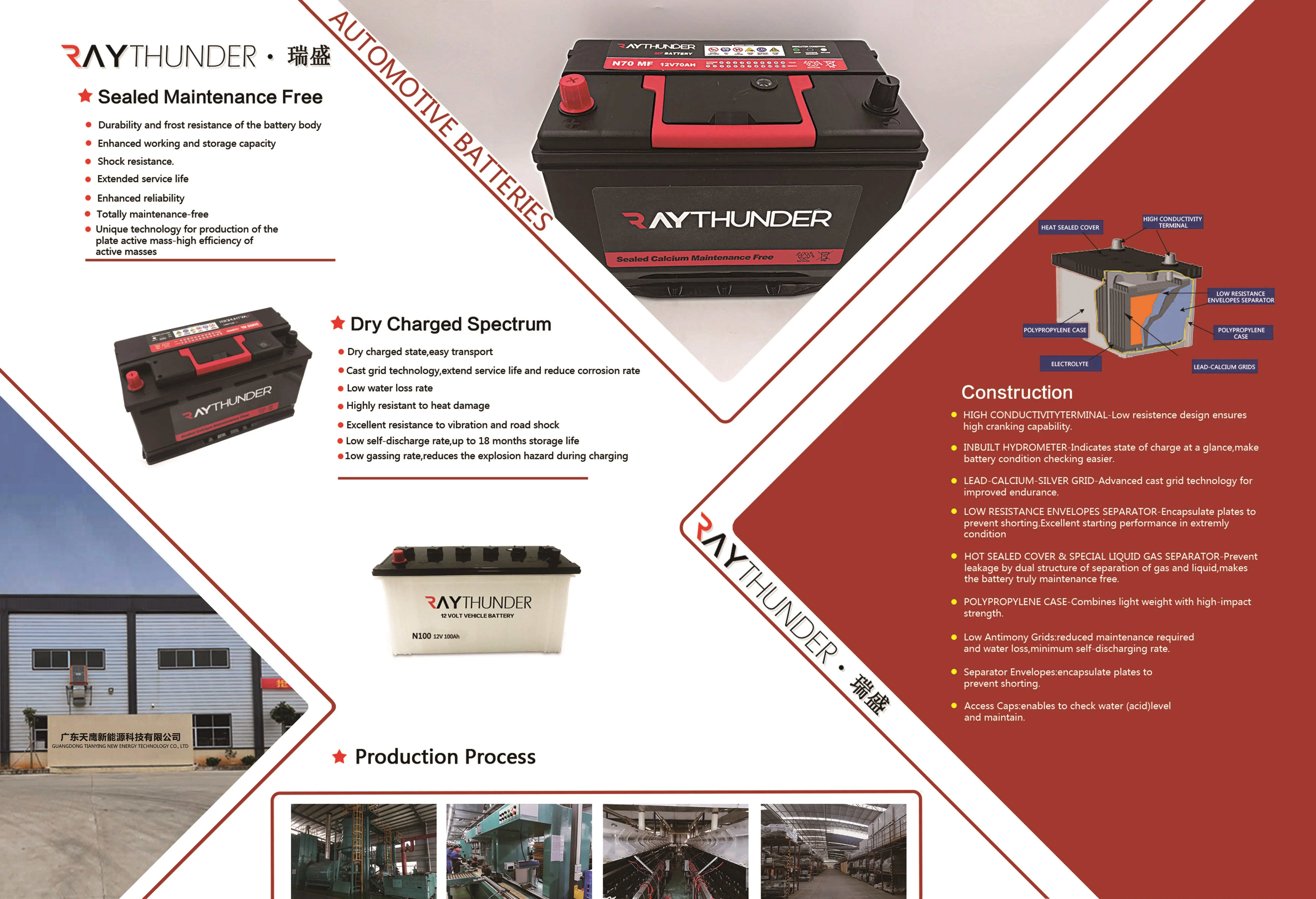 Shenzhen Raythunder New Energy Technology Co.,Ltd was founded in 2011, we are a leading manufacturer and developer of Sealed Lead Acid (SLA) batteries. The factory is located in ShaoGuan with more than 200 employees which include an experienced management team supported by a team of highly committed technicians. Raythunder New Energy's annual capacity exceed one million KVAh ,To stand out on performance and reliability Raythunder conforms to the high international standards: CE, and RoHS.