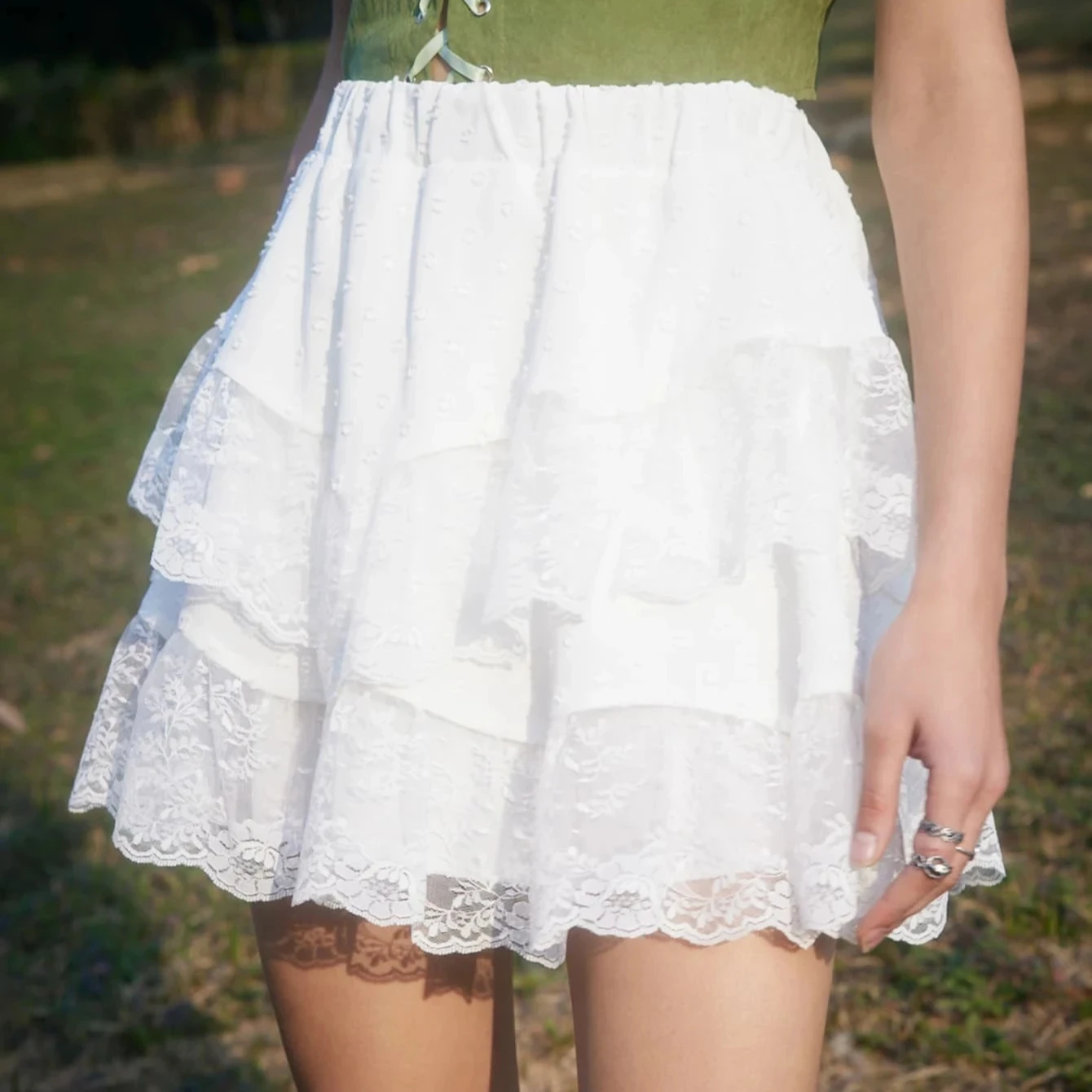 New Arrival White Contrast Lace Romantic Skirt Summer High Waist Good Quality Super Comfy Tiered Layer Short Skirt for Girls $9.30-11.50
