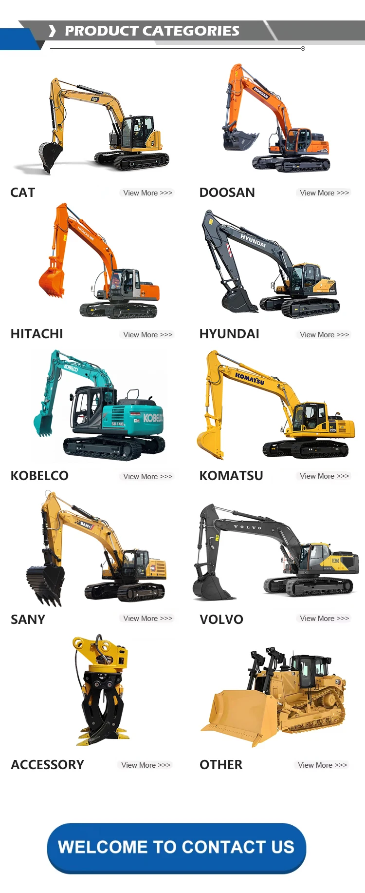 A:We supply many international brand used excavators ,used bulldozers,used loaders,used cranes ,used forklifts,used dumpers,used road graders,used road rollers and so on.