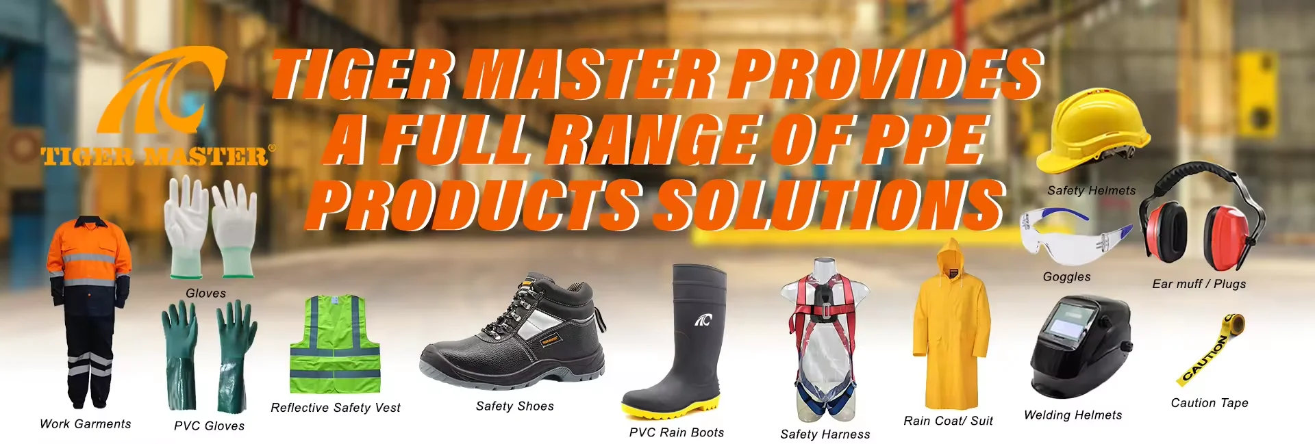 Tiger Master is safety shoes and PVC rain boots manufacturer. We have been qualified ISO 9001:2015 quality management system. Also, some of our hot sale models have qualified CE ENISO 20345 and ASTM F2413-18. Meanwhile, we are also a professional safety products brand of appliance for personal protective equipment (PPE), especially in the fields of safety gloves, working garments, helmets, dust masks, ear muff/plug, safety goggles, rain coat/suit etc.