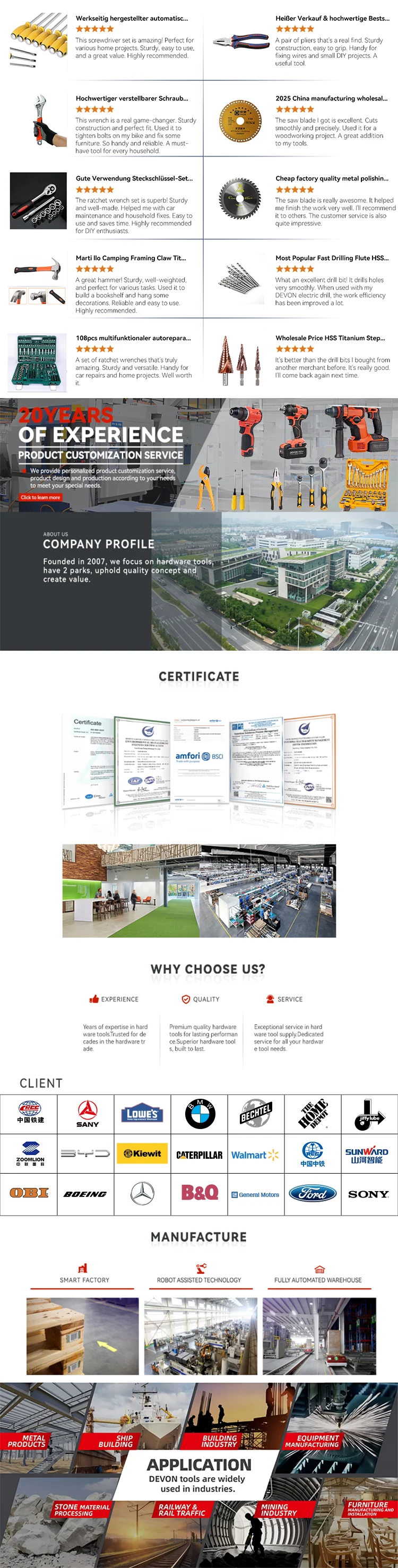A: We are a 20-year-old source factory specializing in comprehensive hardware solutions. With two production bases in China, we pride ourselves on offering a wide range of top-quality hardware tools.