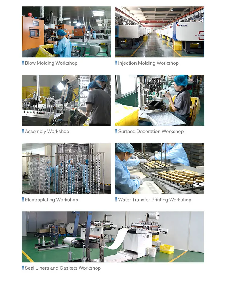 Silk screen printing, thermal transfer printing, hot stamping, electroplating, water transfer printing, etc for plastic caps, plastic bottles, glass bottles, etc.