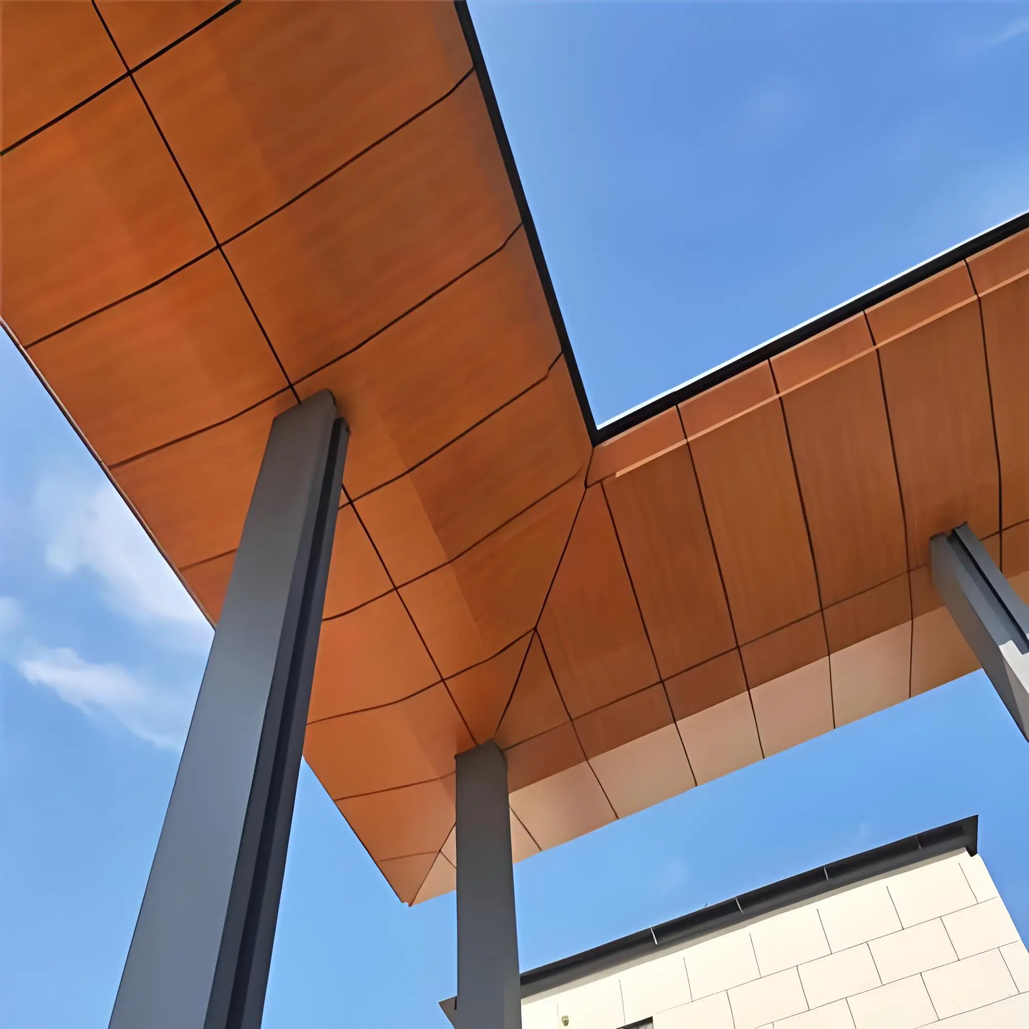 Compared with solid wood, wood-grain aluminum composite panels have better fireproof, moisture-proof, rust-proof and UV-proof properties. They can maintain stable performance under different environmental conditions and are not easily affected by factors such as fire, moisture, rust and ultraviolet rays, improving the safety and reliability of use.