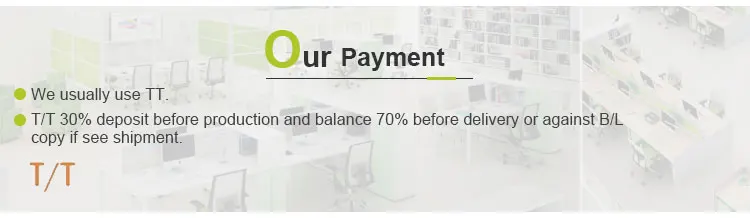A: T/T, L/C, Trade Assurance, Western Union or others.