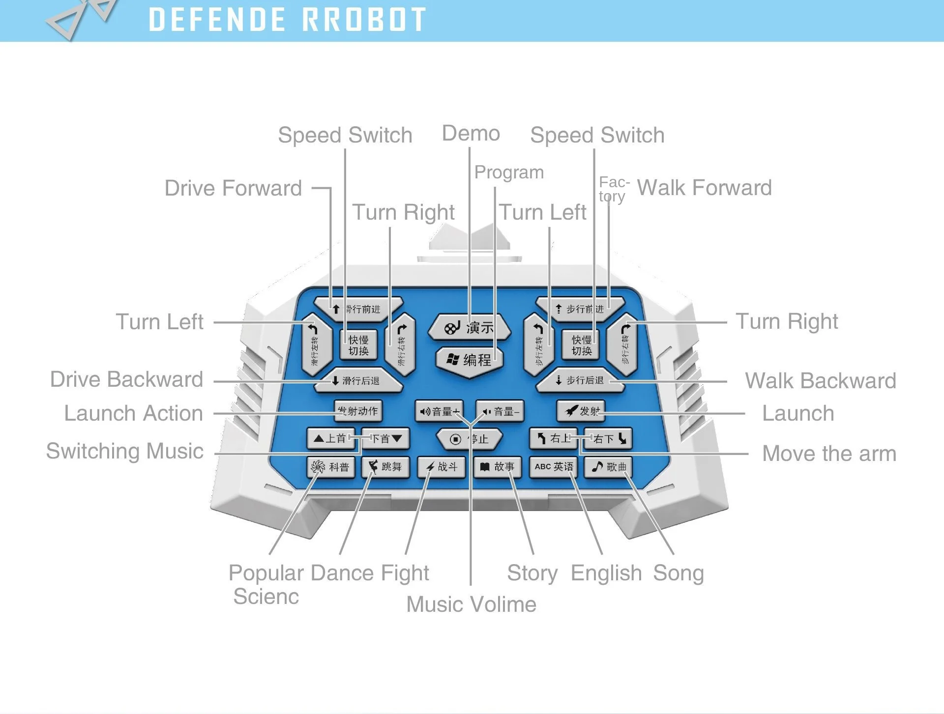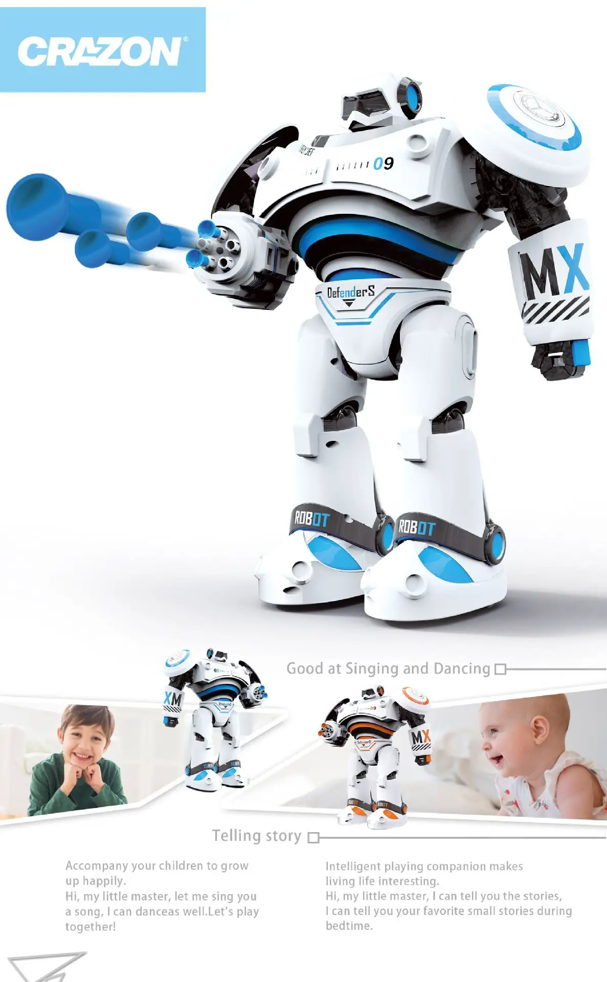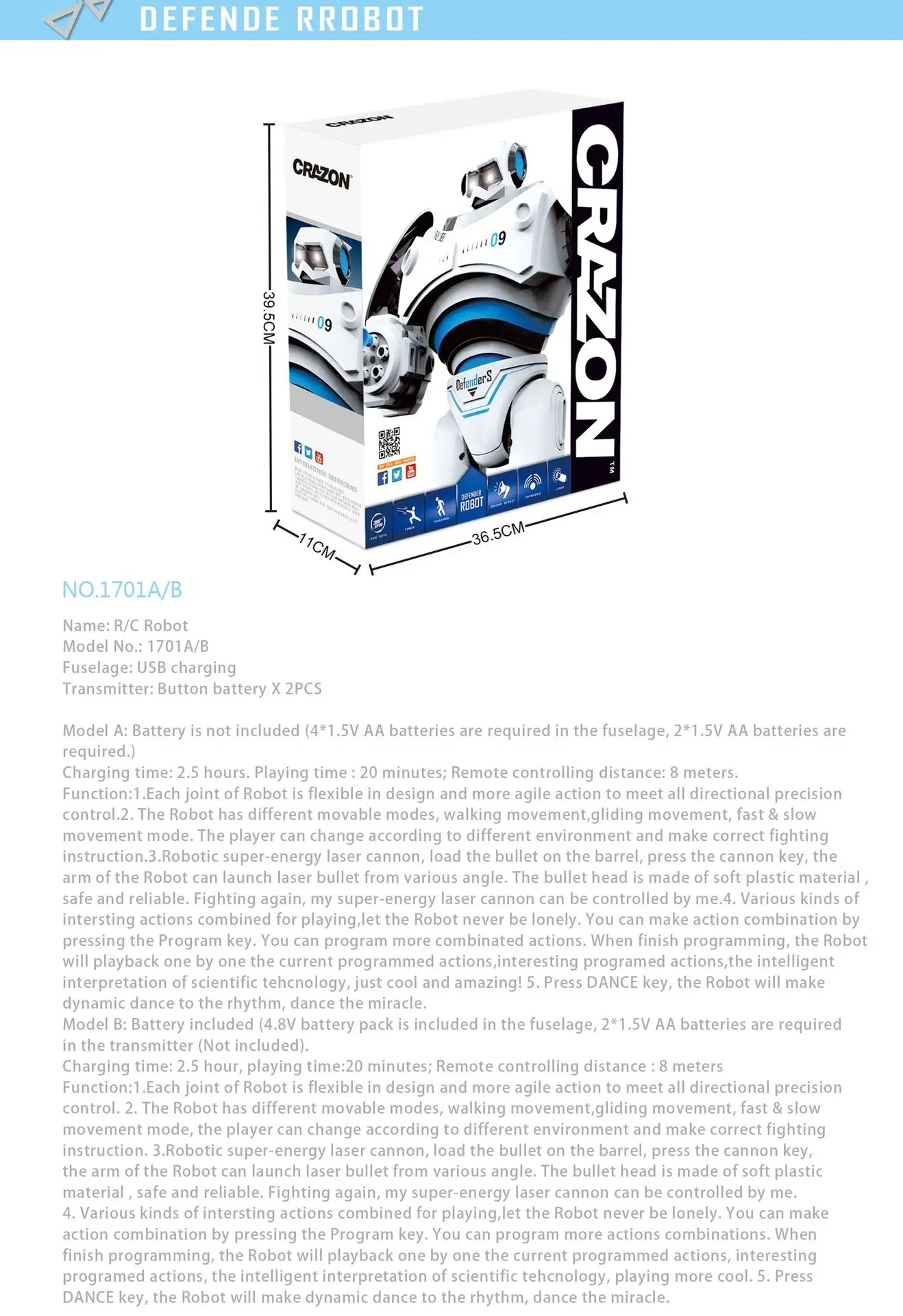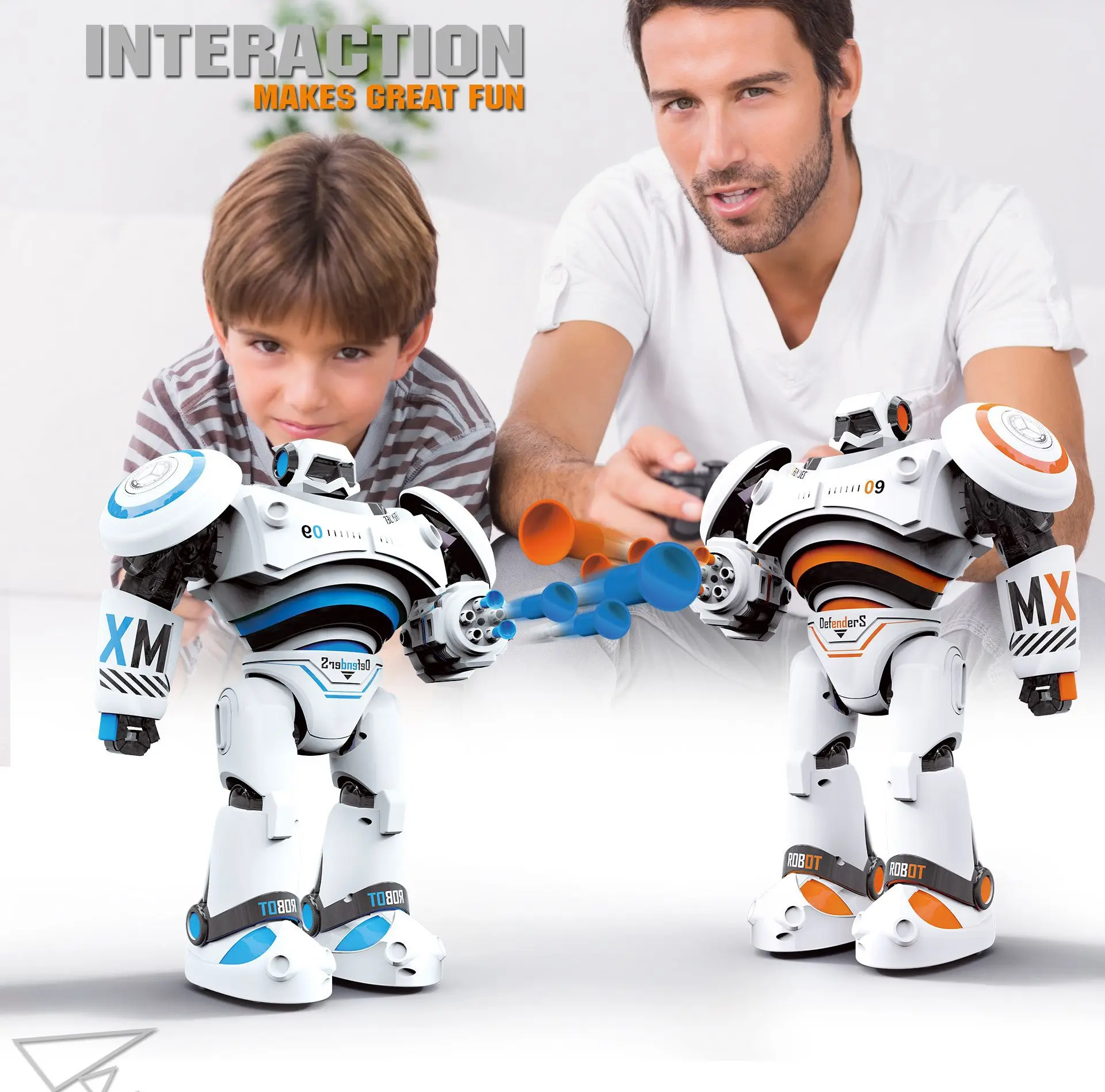 Every joint of the robot is flexibly designed, and the action is more agile to meet the full range of precise control. 2. The robot has different movement modes, walking movement; sliding movement and fast and slow movement mode, players can change according to different environments, and make correct combat operations instructions.