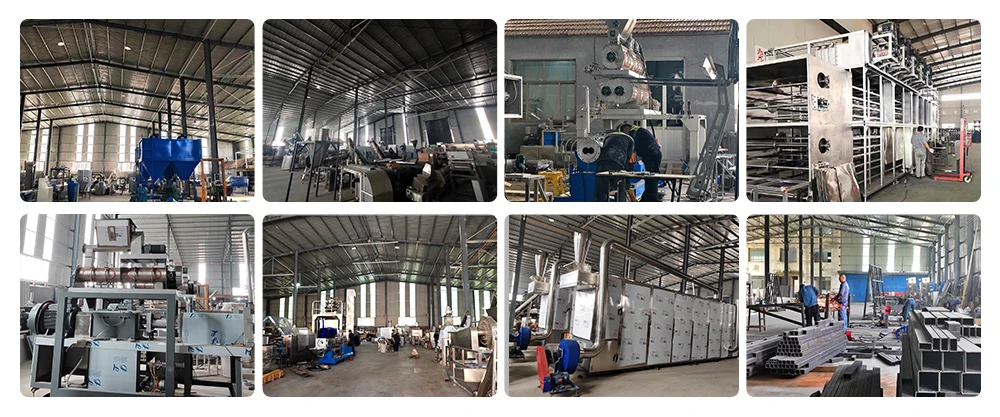 The company's main products include: puffed snack food machinery, pet feed machinery, breakfast cereal production line, organizational silk fibroin production line, instant rice nutrition rice production line, corn flake production line, millet strip production line, bread bran production line, pasta production line, pre gelatinized starch production line, fish bait and shrimp bait production line, microwave sterilization and drying equipment, etc. We have developed kinds of extrusion machinery, equipment and technology, and have become an important professional manufacturer at home and abroad.