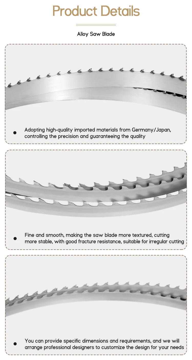 Using Sweden, Japan, Germany and other imported materials to produce sponge belt knife, shearing machine belt knife, velvet belt knife, double edge phase knife crescent belt knife, wave belt knife, sanitary paper belt knife, cloth cutting machine belt knife, Blade blade, blade blade, EM machine blade, emery band saw blade, stone band saw blade, woodworking band saw blade, tungsten steel band saw blade, Stelli alloy band saw blade, bimetal band saw, food band saw blade, shoe saw blade, Japan N0C band saw blade, Furniture band saw blade, woodworking alloy saw blade, high speed steel saw blade, aluminum alloy saw blade, diamond saw blade, ceramic cold saw blade, diamond floor saw, heat treatment strip and other products are exported to home and abroad, has been widely praised by customers
