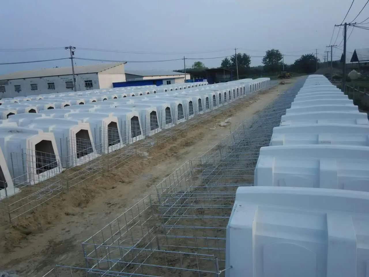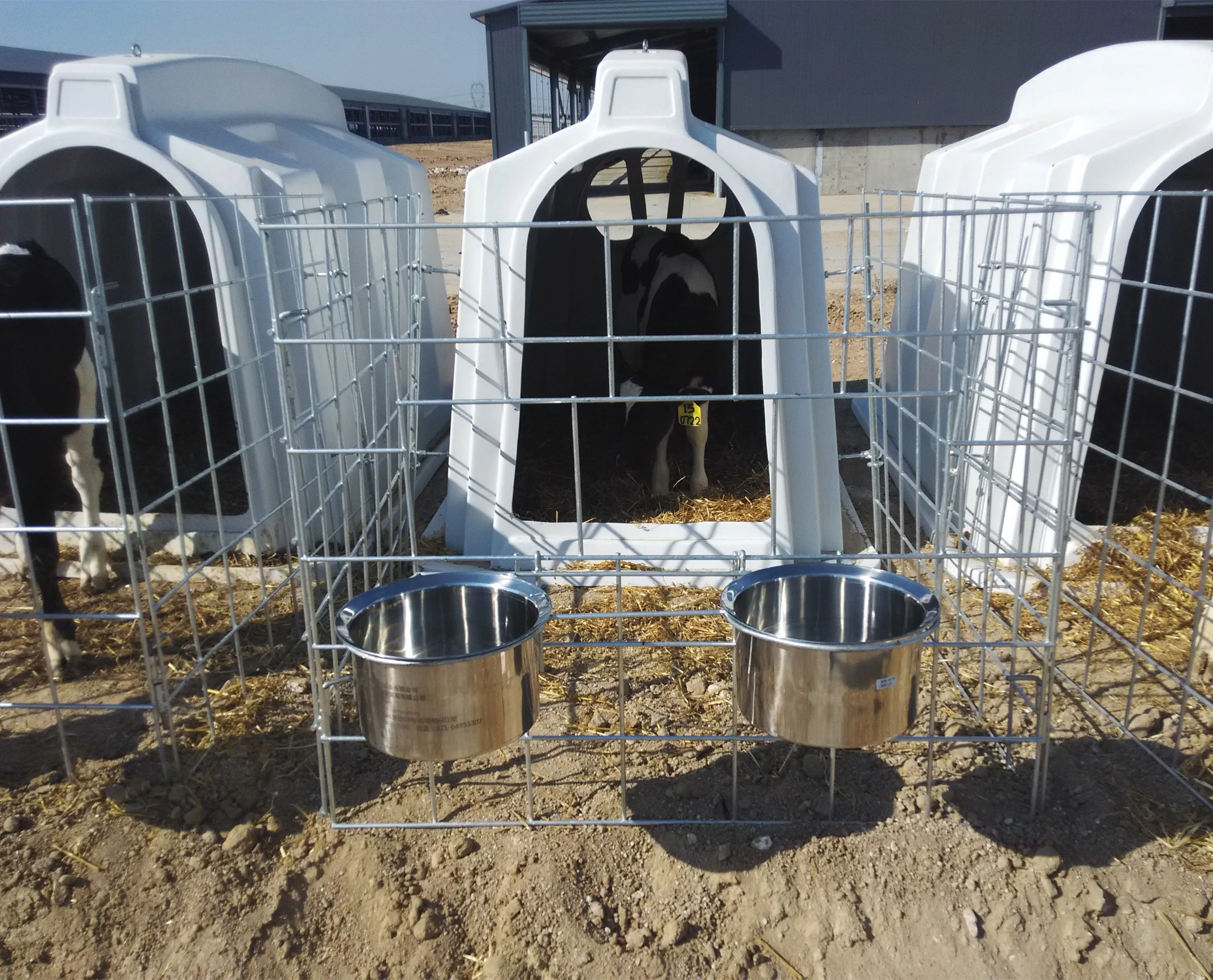 Feature ◎Made from food grade heavy-duty, impact resistant polyethylene.One shot Roto-molded process brings the calf hutch more strength and long-life usage, no rust forever and ECO friendly,-40°C strength testing passed ◎Easy installation and moving, labor saving ◎Round swing rear window let more air flow inside ◎Rounded edge design protects animal from bruise ◎High standard galvanised steel rod or pipe and plastic fence can be customized ◎Front fence is with two bucket holders,suitable for plastic or stainless buckets ◎Fence, buckets,feeders and hay rack are all for extra component purchasing