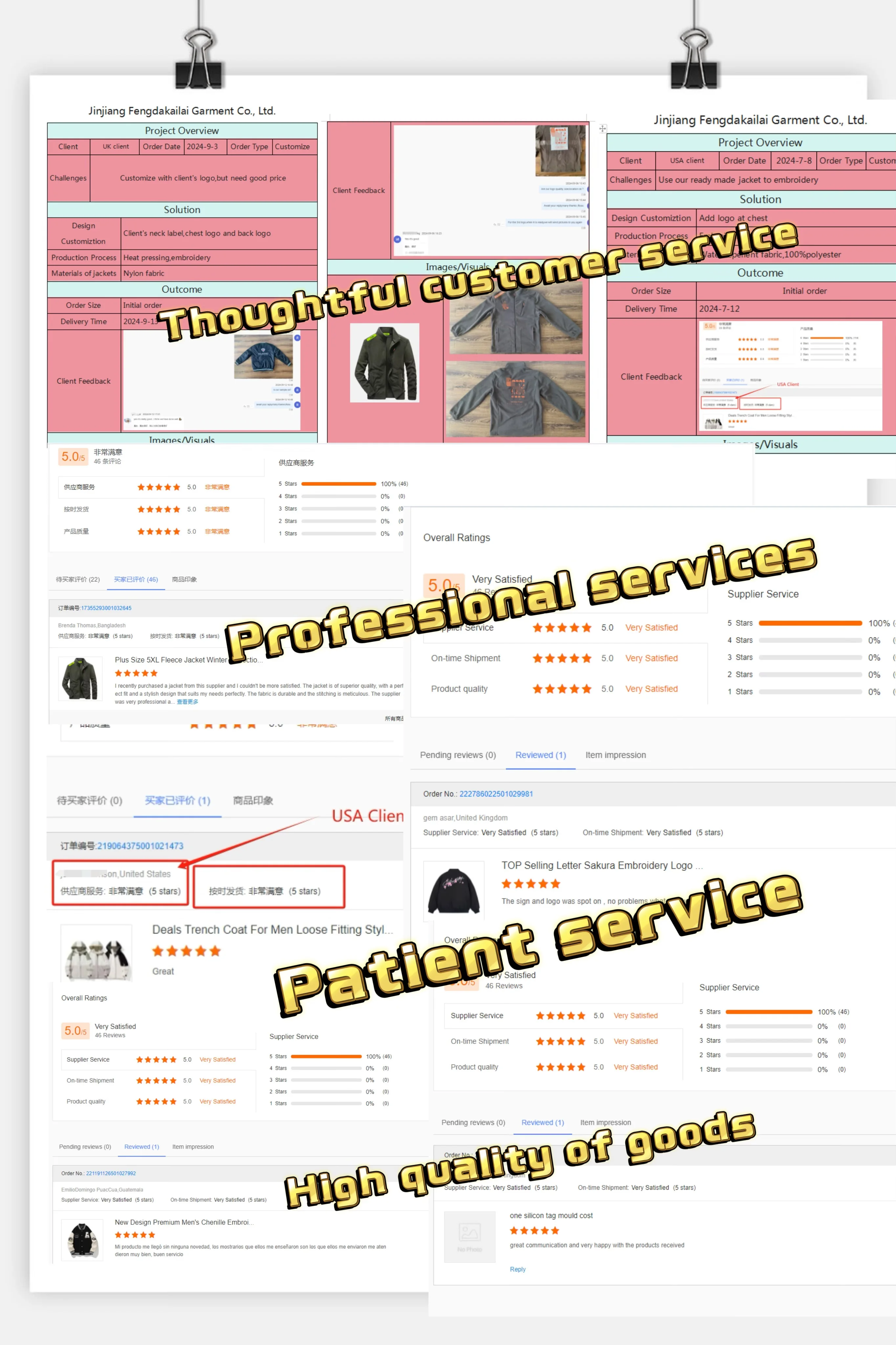 A.We always keep customers updated on the status of their orders throughout the production process, so we can identify problems promptly and respond to ensure delivery dates. | ||