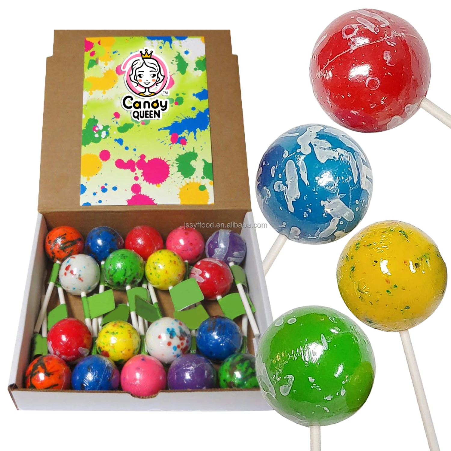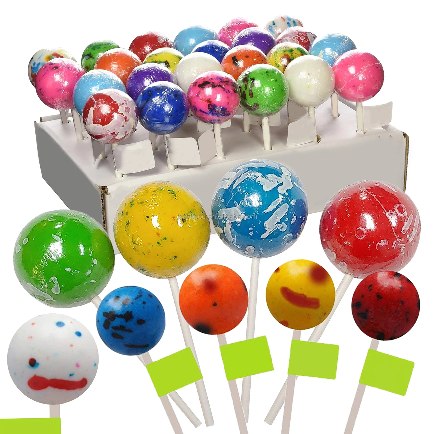 Factory Direct Custom Label Halal Big Ball Lollipops Sour Sweets Filled Centre Multicolor Fruity Lollipop Giant Lick Ball Candy