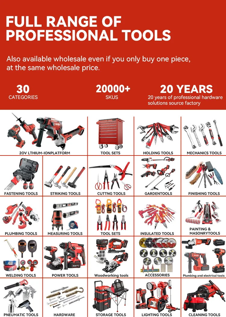 A: We are a 20-year-old source factory specializing in comprehensive hardware solutions. With two production bases in China, we pride ourselves on offering a wide range of top-quality hardware tools.