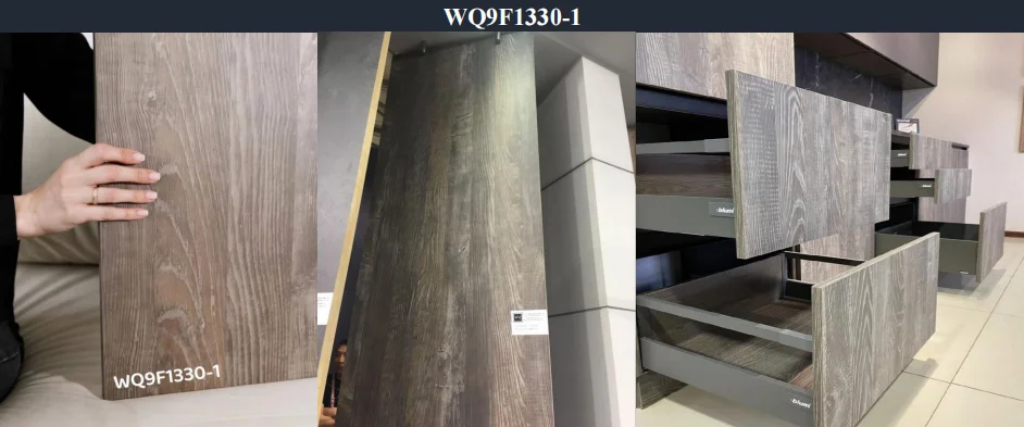 ---Molds designs and the paper designs are 100% matched, two sides press at one time,the designs come out very vivid and real like the wood,looks super elegant.