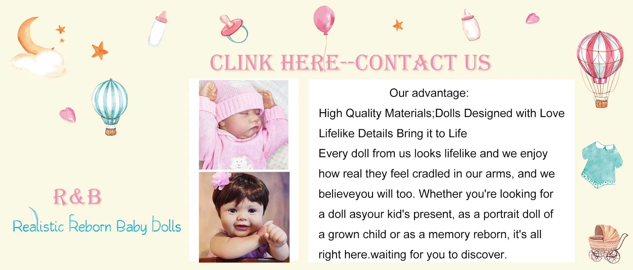 --- The main reason is that reborn dolls are handcrafted, and we can achieve over 90% similarity between the actual product and the images.