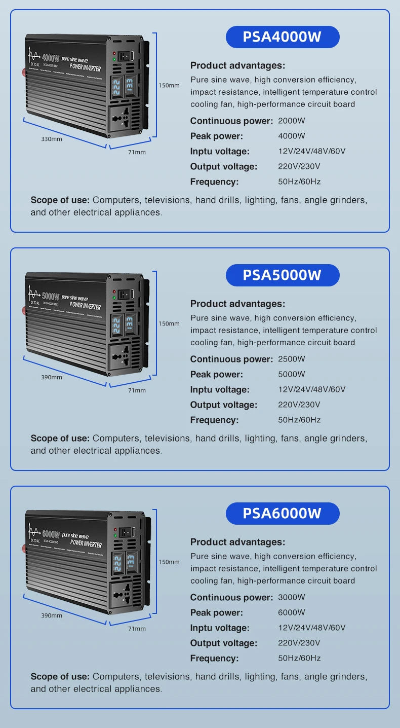 Whether you're building a new solar energy system or upgrading an existing one, our Pure Sine Wave Power Inverter is your reliable choice for seamless DC-to-AC conversion. Experience the perfect balance of performance, durability, and affordability today!