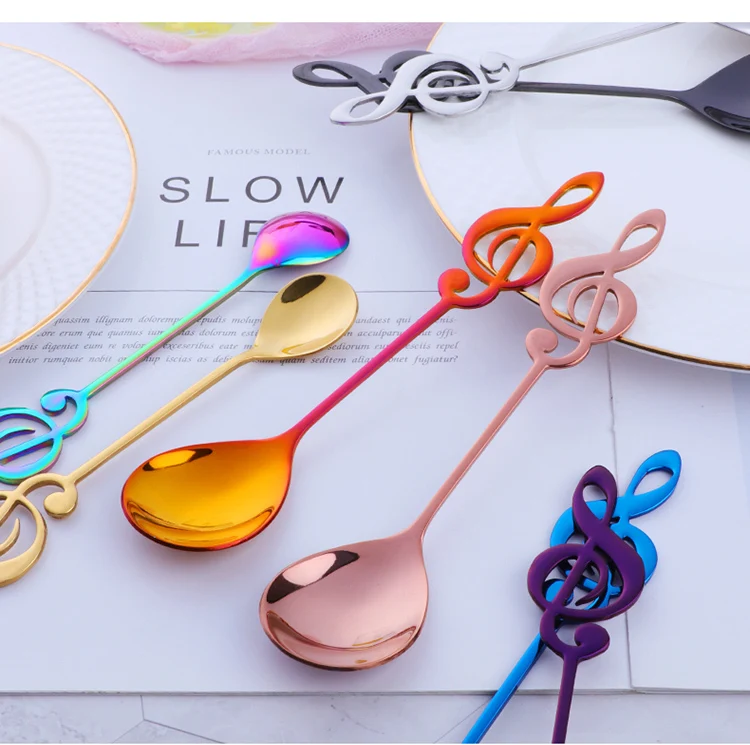 2 Sizes Golden Color Mini Music Spoon 18/10 Stainless Steel Music Symbol Spoon