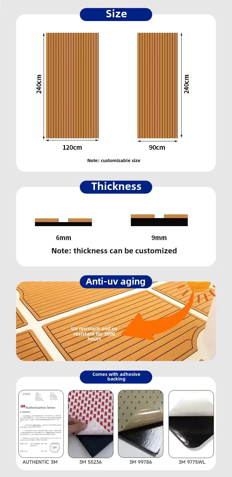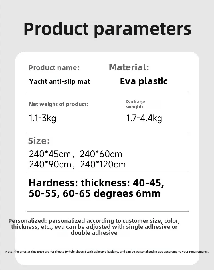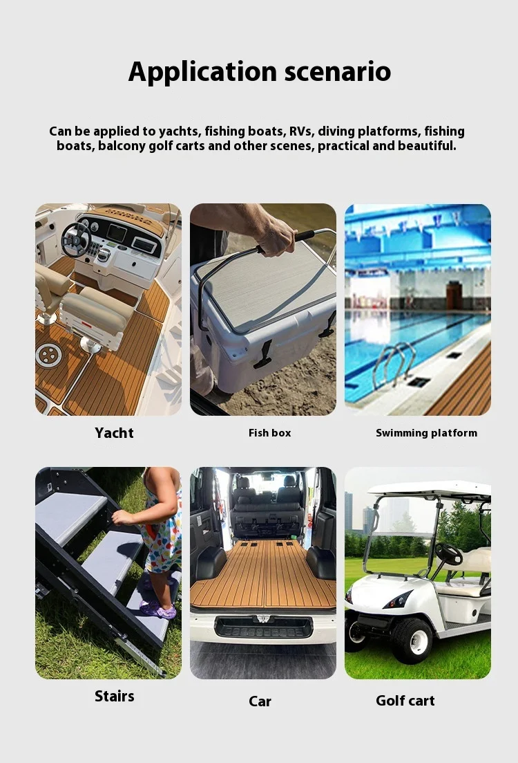 Our product range covers PE/EVA marine sheet for boat, PE/EVA deck pad for SUP & kiteboard, PE/EVA traction pad for surfboard.We offer more than 24 different textures on PE/EVA foam material to provide different traction need to our customers. And we welcome would love to discuss any different and creative ideas on the design with customers.