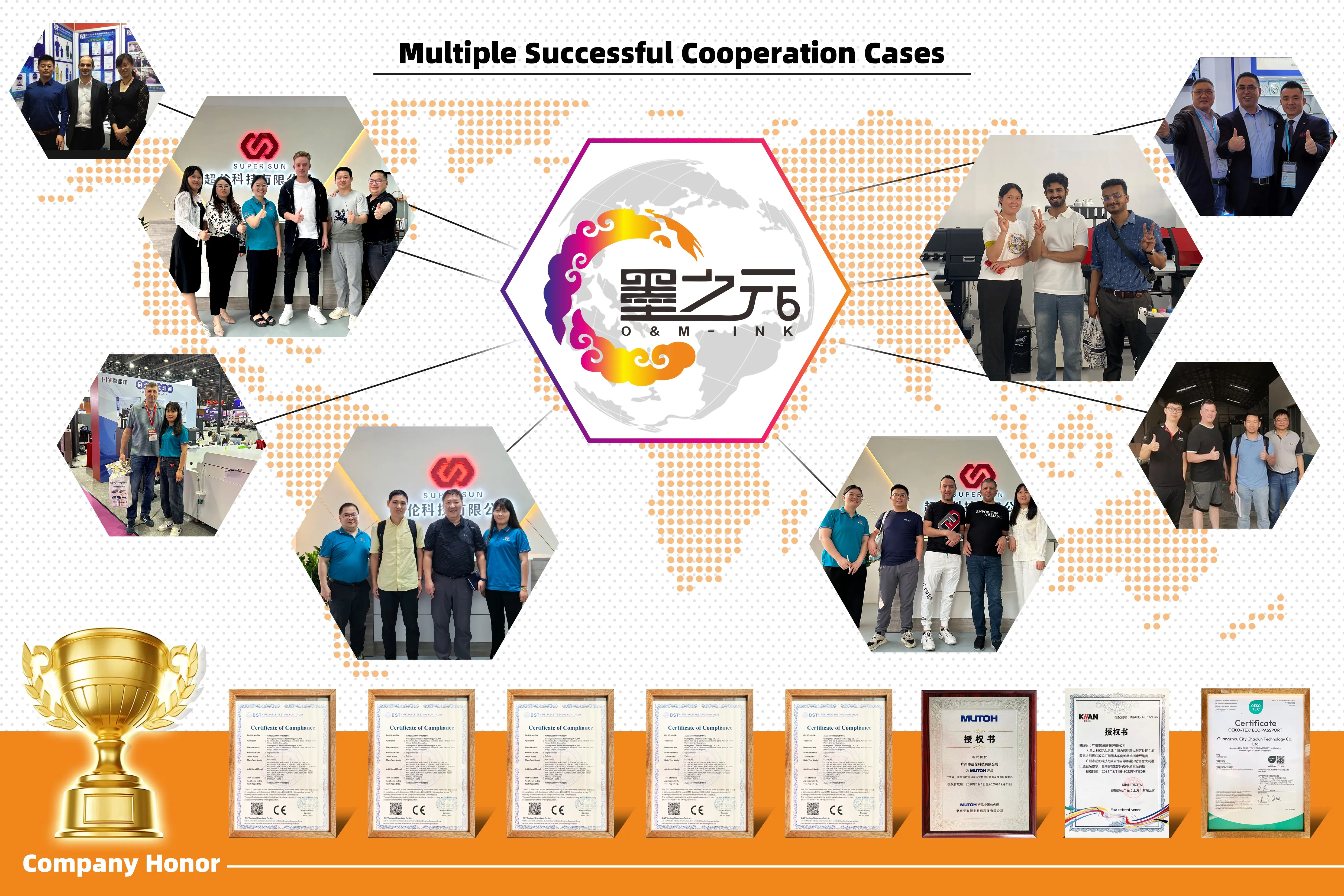 A1: One of biggest digital printing solution in Guangzhou of China !Premium sublimation ink, DTF ink,dtf PET film,Heat Transfer Paper, Heat Press Machine, Hot melt powder,dtf powder shaking machine,so on. Founded in 1997.with more than 26 years experiences in digital printing solution. Agent wanted! Make customer OEM designs. Help you easily sell! Good logistics service!professional engineer!
