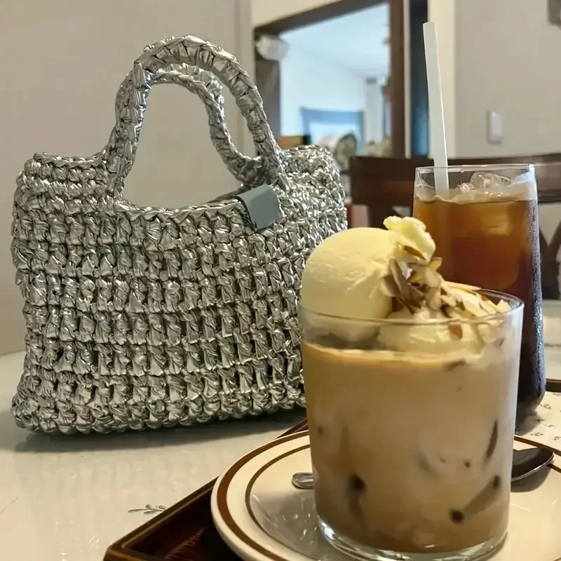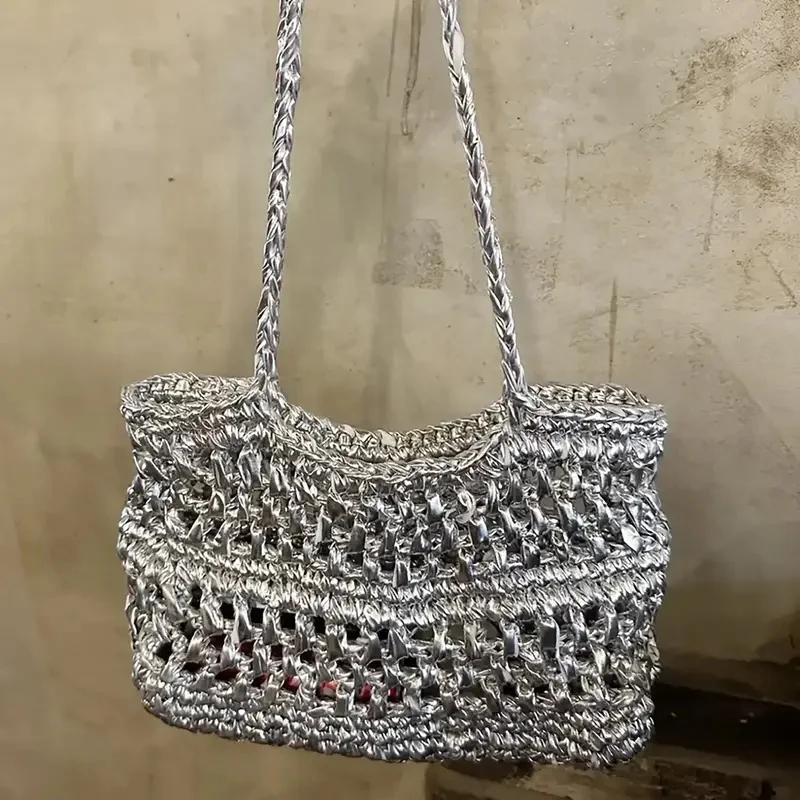 Sparkle Solid Color Hand knitting Spaghetti Glossing Shiny Leather Polyester Metallic t Shirt Yarn For Crochet Bags Baskets