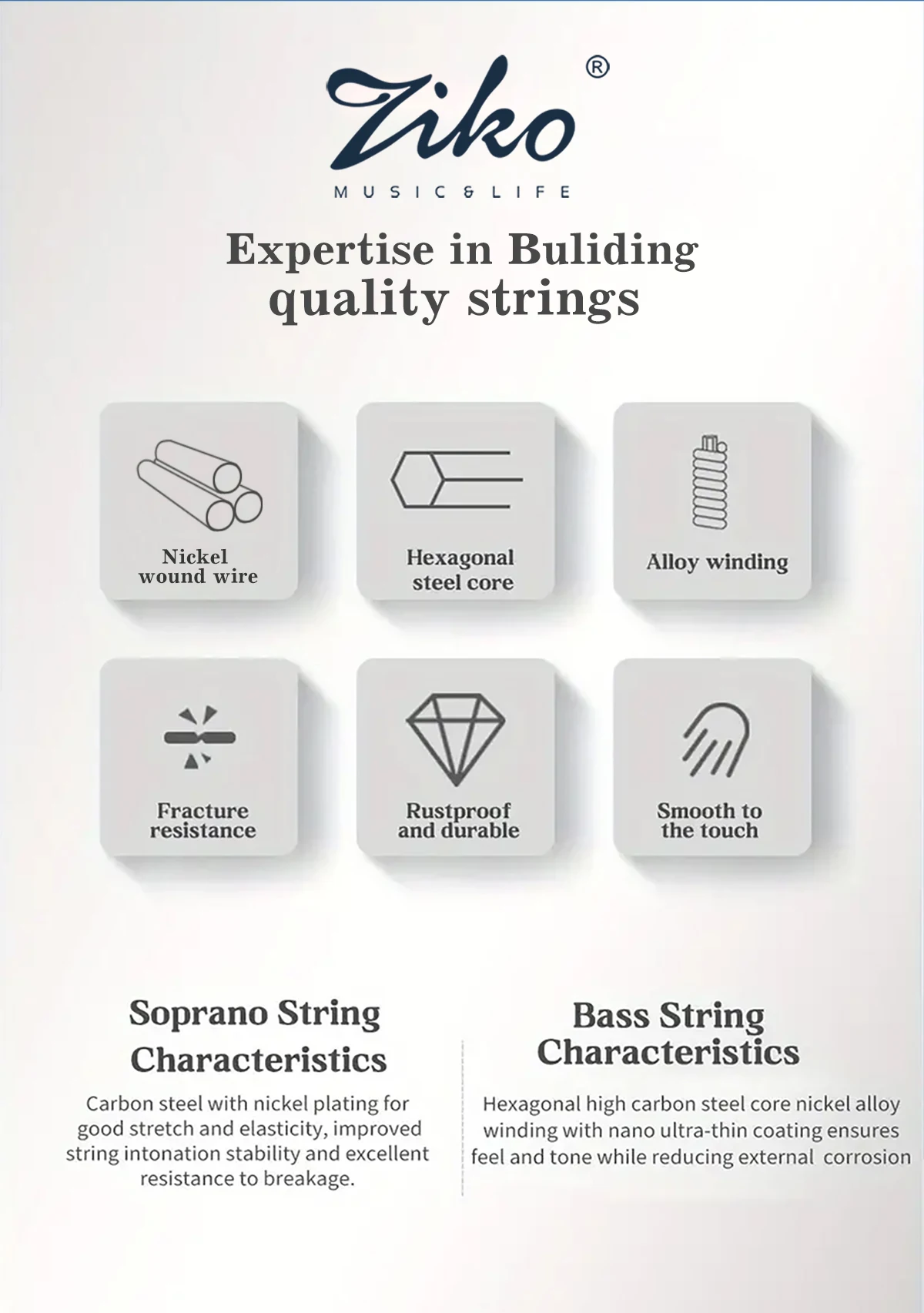 Materials | Nickel wire wound for all 1-5 strings | |||