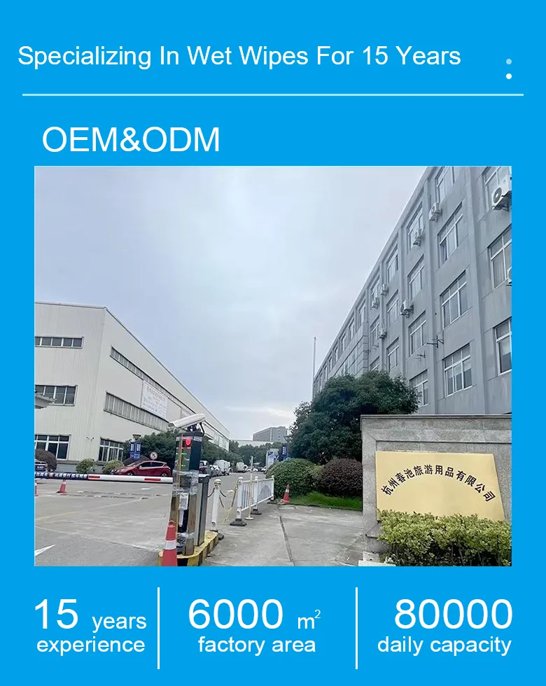 We are manufacturer specialized in wet wipes, we locates in Hangzhou city, Zhejiang province.We produce all our products and also supply to many trading companies.Weclome to visit our factory.