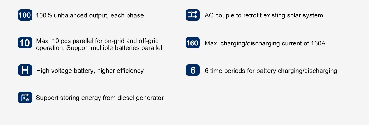 Grid Regulation | IEC 61727, IEC 62116,CEI 0-21, EN 50549, NRS 097, RD 140, UNE 217002, OVE-Richtlinie R25, G99,VDE-AR-N 4105 | |||||