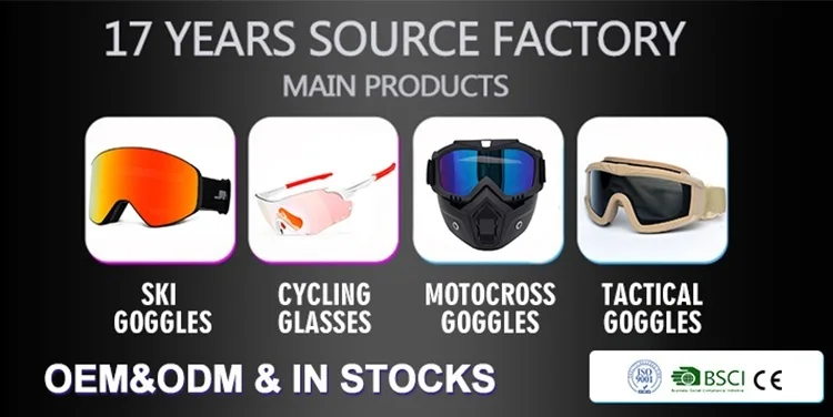 A: We are 100% manufacturer of varoius sports glasses & goggles. Our main Product: cycling glasses, ski goggles, motorcycle goggles, Tactical goggles, Sunglasses, basketball glasses,safety glasses,etc.