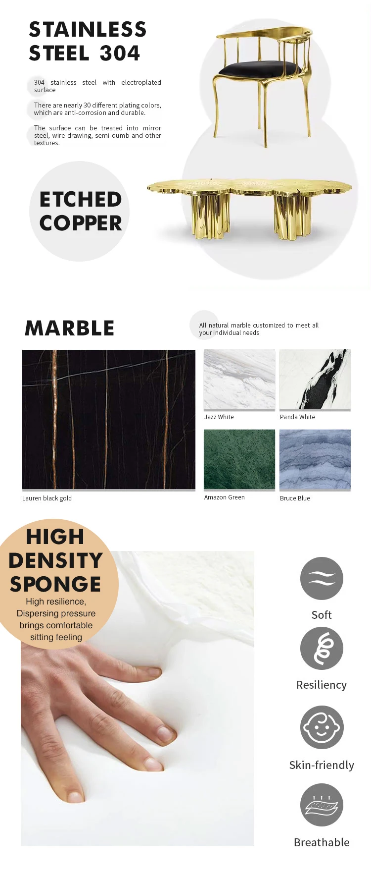 Materials | Imported leather, imported fabric, solid wood frame, high elastic sponge, brass, stainless steel /your choice. | |