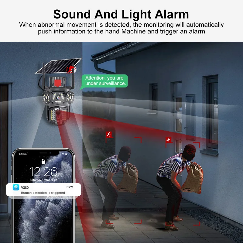 Shingel 2MP Outdoor Dual Lens Triple Screen 4G Sim Card Solar Camera 10x Zoom Human Detection Solar 4G Camera