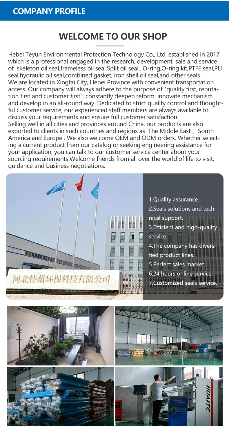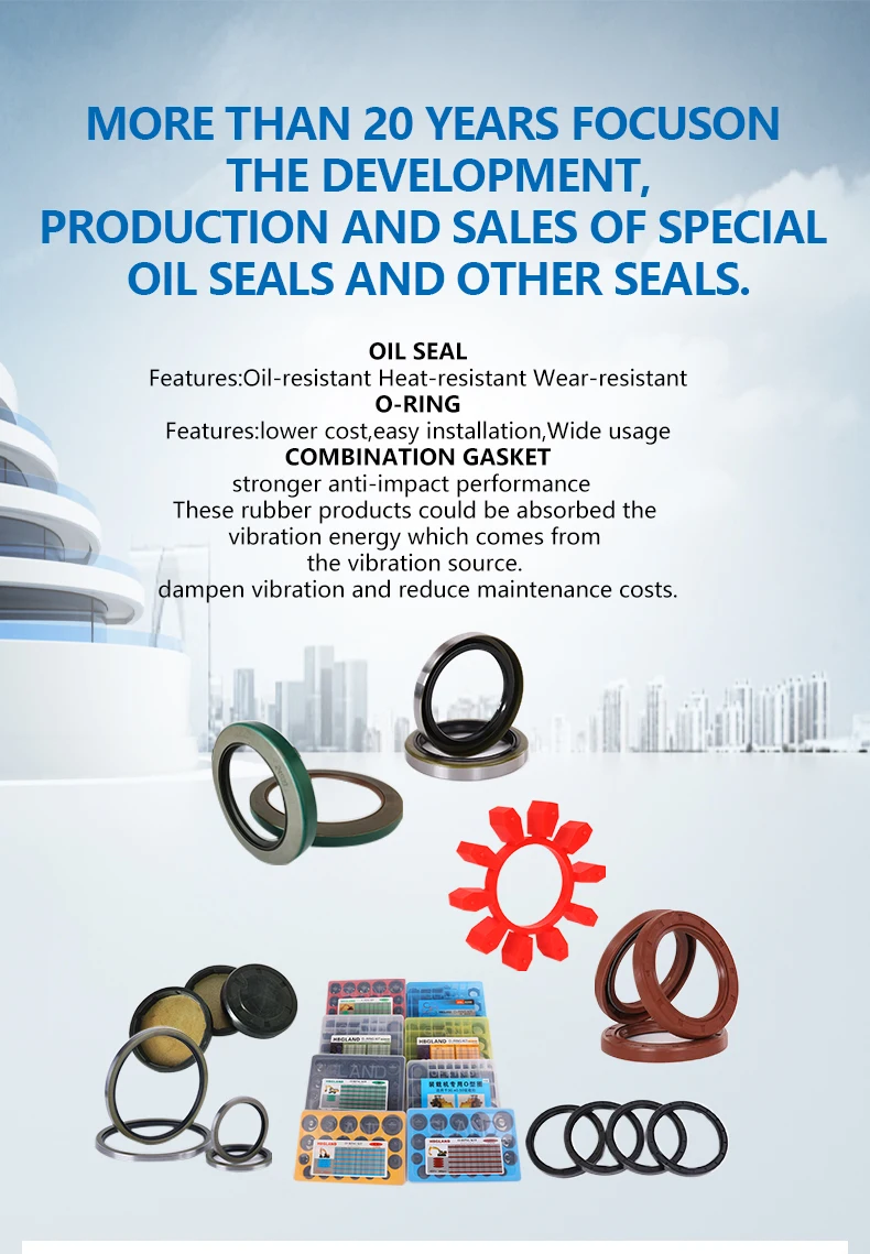 We can supply various kinds of Skeleton oil seal, combination pad, Iron Shell Oil Seal, O-ring, PTFE seal, non-skeleton oil seal, hydraulic oil seal and other seals.