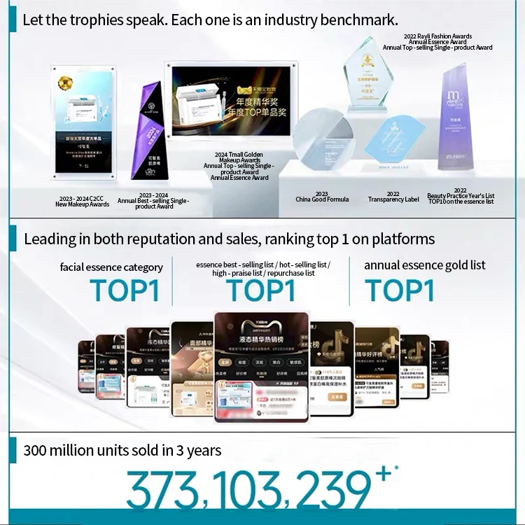 • High market recognition: In 2021, it ranked the third in the TOP50 of "The most patriotic makeup brand by users" and won many awards such as the most competitive brand of the year in the "Blue Rose Award" of China's cosmetics industry. In 2021, it won the TOP1 dressing brand of Ali Health category, and the 2018-2019 can be revived Star facial mask was ranked No.1 on the list of Small Red Heart Award Soothing Facial masks.