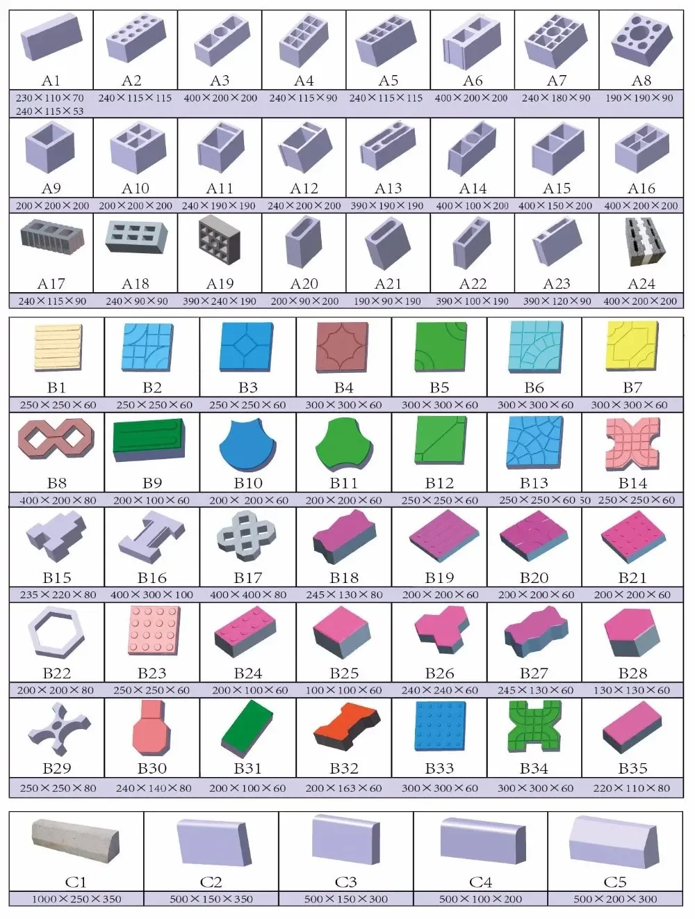 Name | Specification | Block Making Period | Block produced per mold | Production Capacity (per hour) | ||||