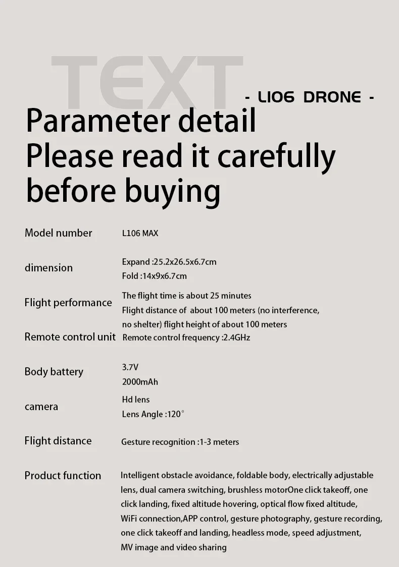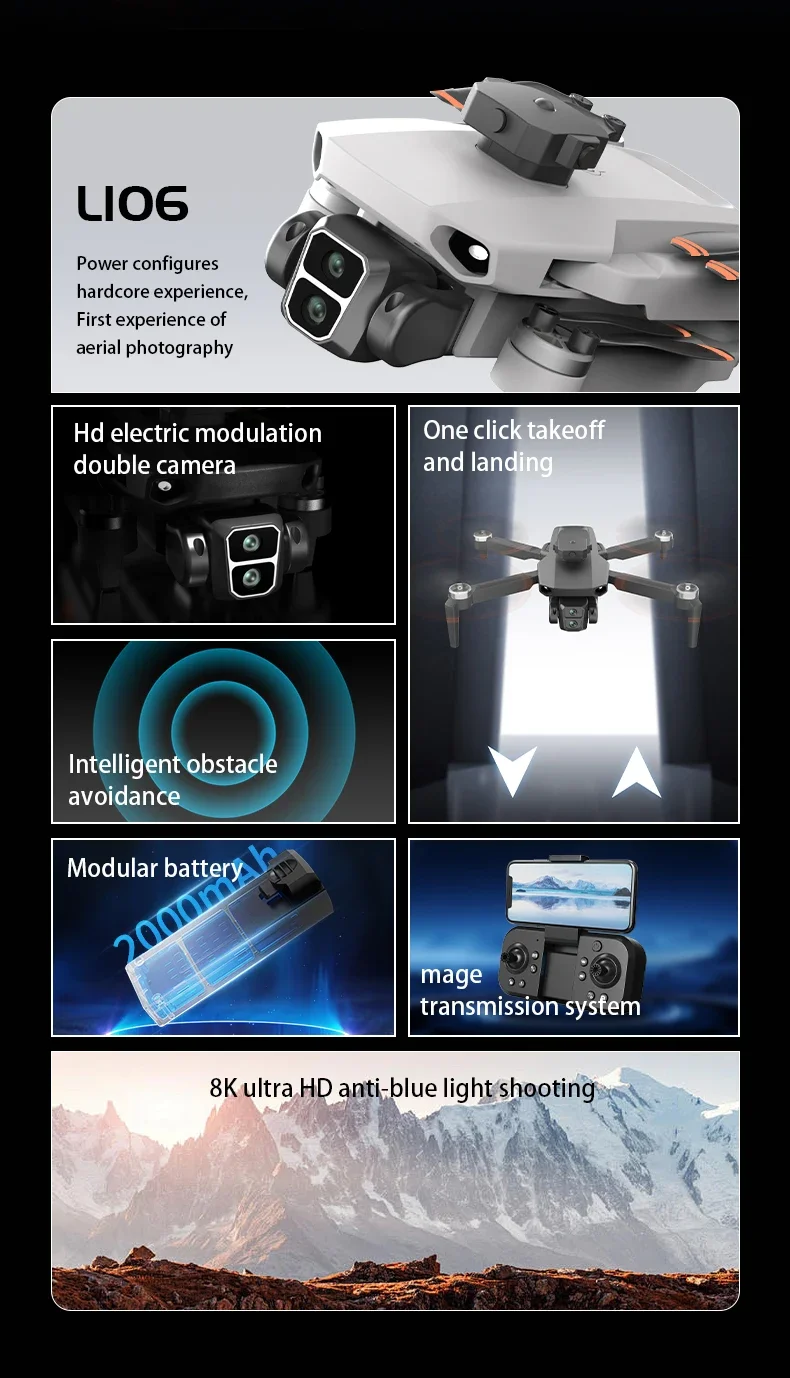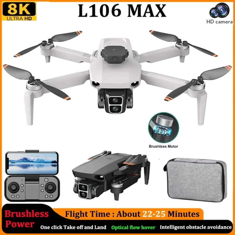 JHD L106 MAX Drone 8K Double Camera New Drone Brushless Motor Optical Flow Positioning Foldable Quadcopter RC Aeroplane Toy Gift
