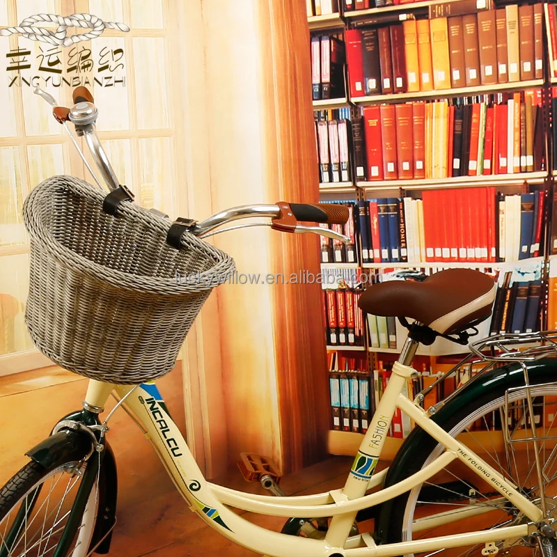 Factory wholesale PP rattan e-bike basket plastic adult bike basket front handlebar basket with straps