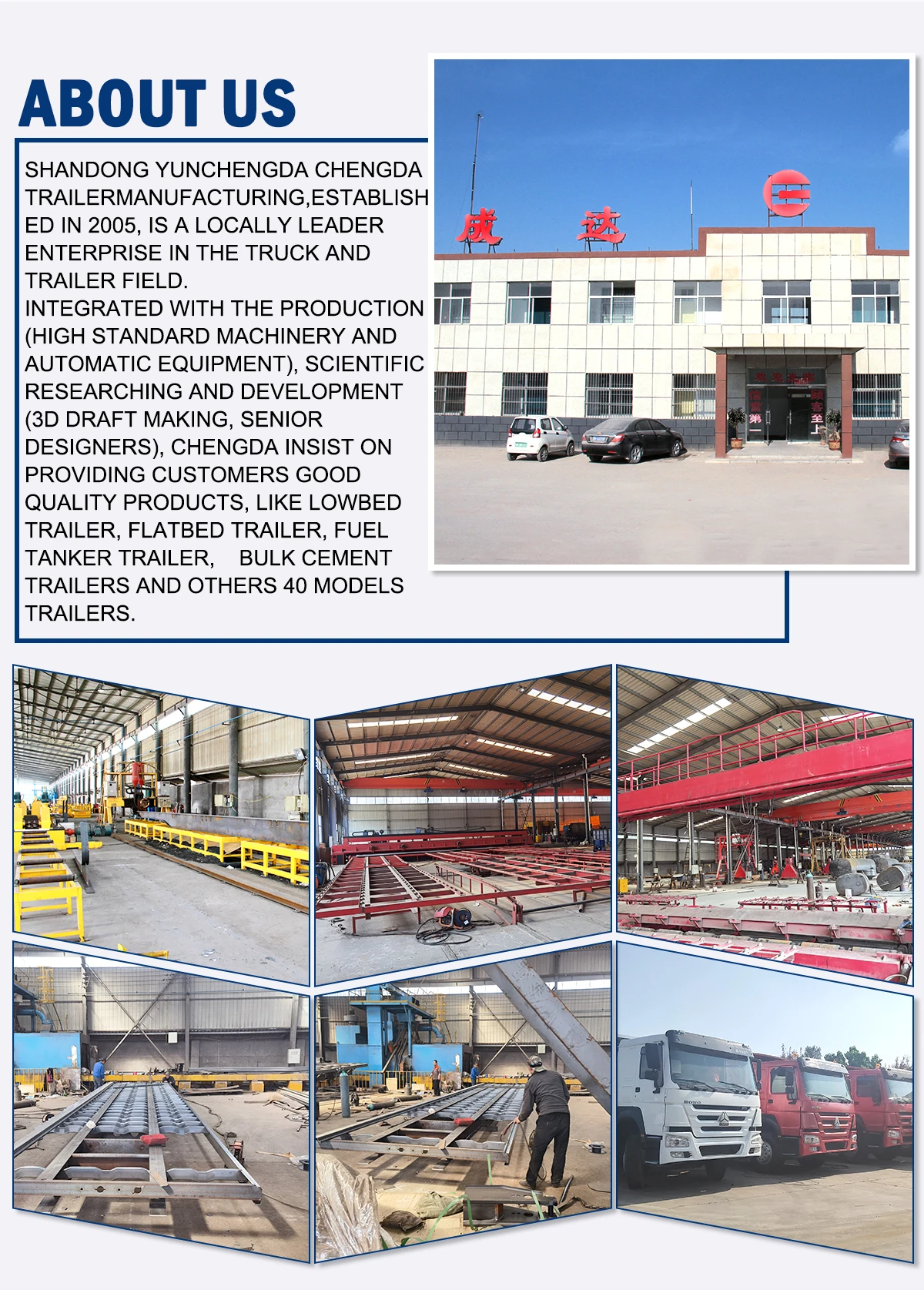 We are professional truck manufacturing factory that has been in existence for 18 years.Every manufacture link,lowbed semi trailers carefully welded.Dump truck is our super star product.Every year we export hundred of dump truck to our target market like Africa Asia South America.Through professional research,now we are top supplier for dump trucks.