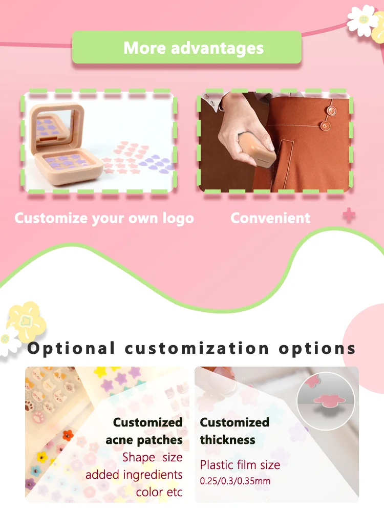 Material: | Hydrocolloid,Teatree oil,Salicylic acid,Calendula,Kumguat,etc.(customization support) | |