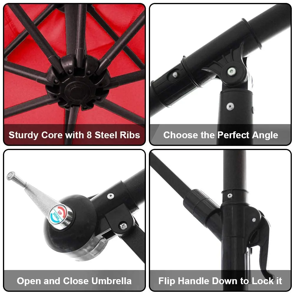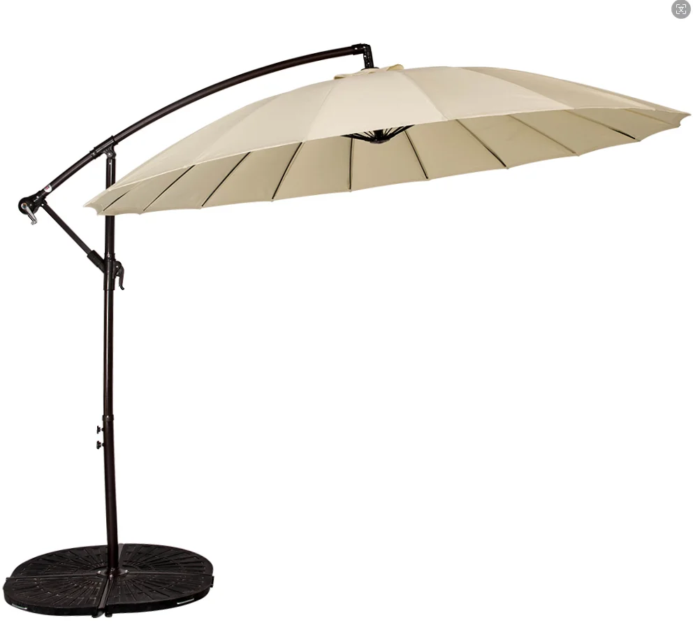 Size : 300cm x24ribs fiber glass ribs Fabric : 180g polyester waterproof Frame : steel with powder coating Pole : 48/42mm Ribs : 5mm fiber glass Height : 255cm adjusting height With crank open system Including steel cross base ,no plates