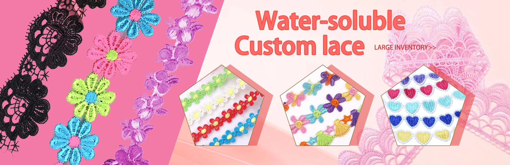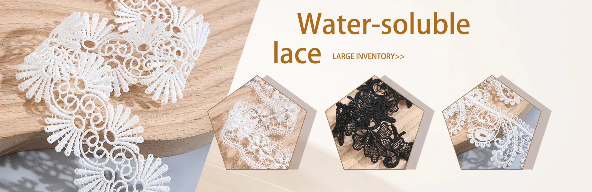 Various types of decorative lace (water-soluble lace, carbone lace, bead lace, ethnic lace, etc.)