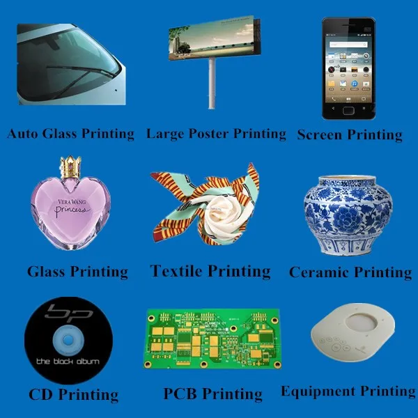 Widely used in textile printing, plate making printing, electronic printing, ceramics, glass, stained paper printing, label plate, and advertising.