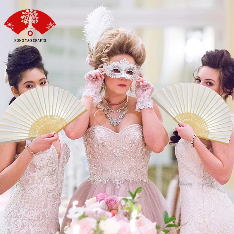 Product Name | Bamboo Ribs Hand Held Folding Fabric Fans For Dance Party Wedding |