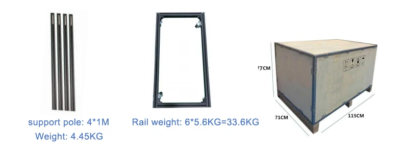 Machine weight | Main machine 15kg, guide rail 4 * 8kg, base shaft 15kg | |