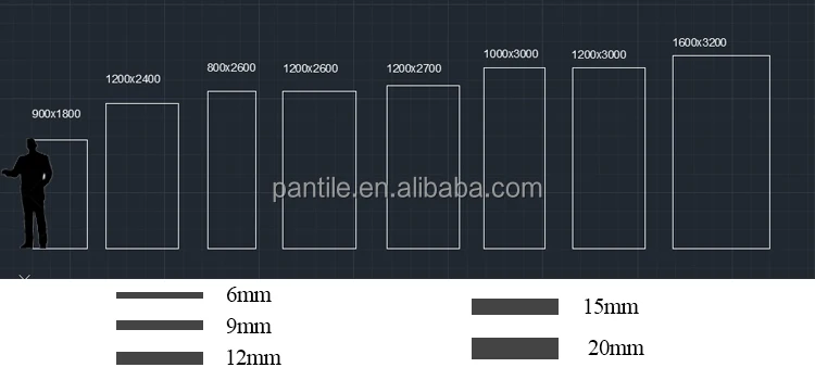 Size mm | 900x1800mm,800x2600mm, 1200x2400mm, 1200x2700mm, 1200x3000mm, 1600x2800mm, 1600x3200mm |