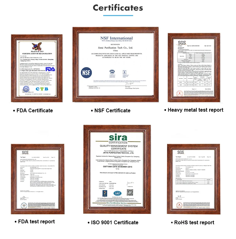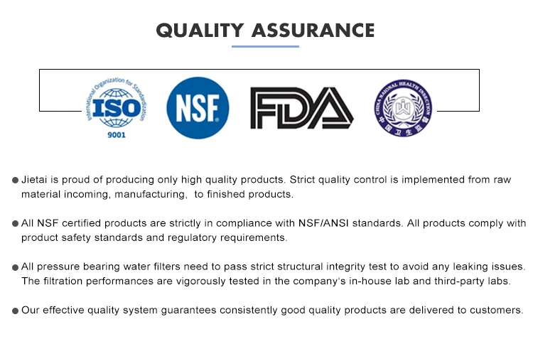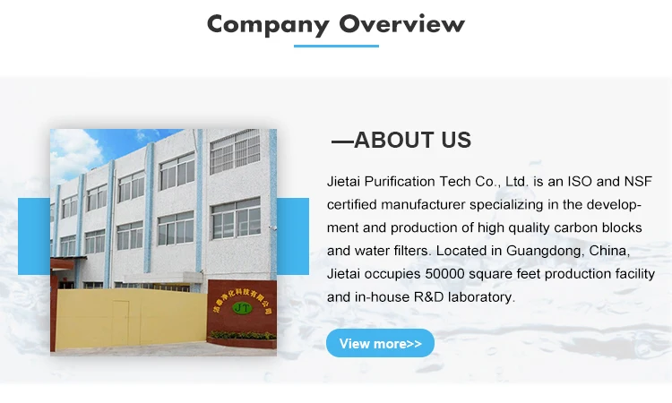 ü Quick connect installation ü Made of NSF 42 Certified granular coconut shell activated carbon ü Delivers great tasting water ü Reduces chlorine tastes and odors, organic chemicals and more ü Retains beneficial minerals in water ü Leak-proof structure ü 1000 gallons capacity ü High flow rate throughout the filter's service life ü Private labeling and customized packaging available Operating parameters Min. operating temperature................. 0.6°C/33°F Max. operating temperature ............... 38°C/100°F Min. working pressure ...................138 kPa/20 psi Max. working pressure ................ 862 kPa/125 psi Rated capacity ................ 1000 gallons (3785 liters) Flow rate ..................................... 1.9 lpm/0.5 gpm |