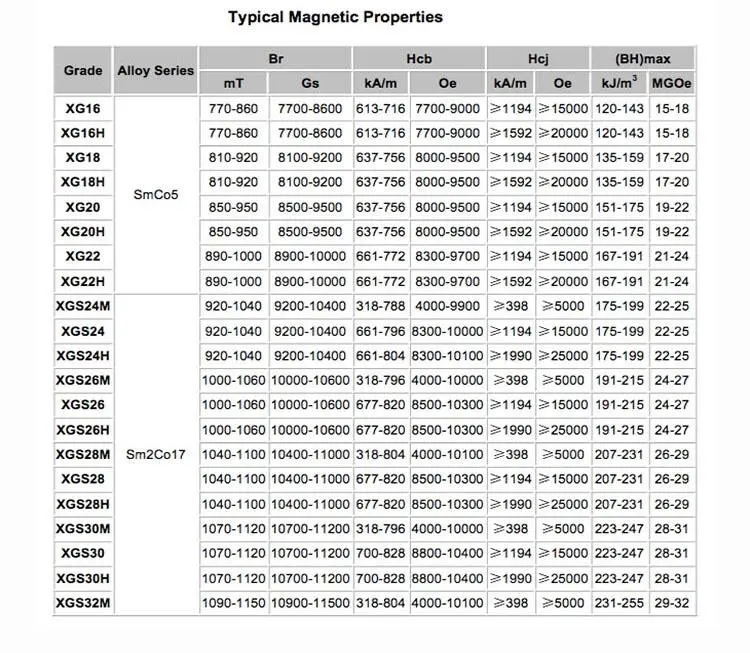 Work Temperaturer | SmCo5 200-- 250℃ / Sm2Co17 300-- 350℃ |
