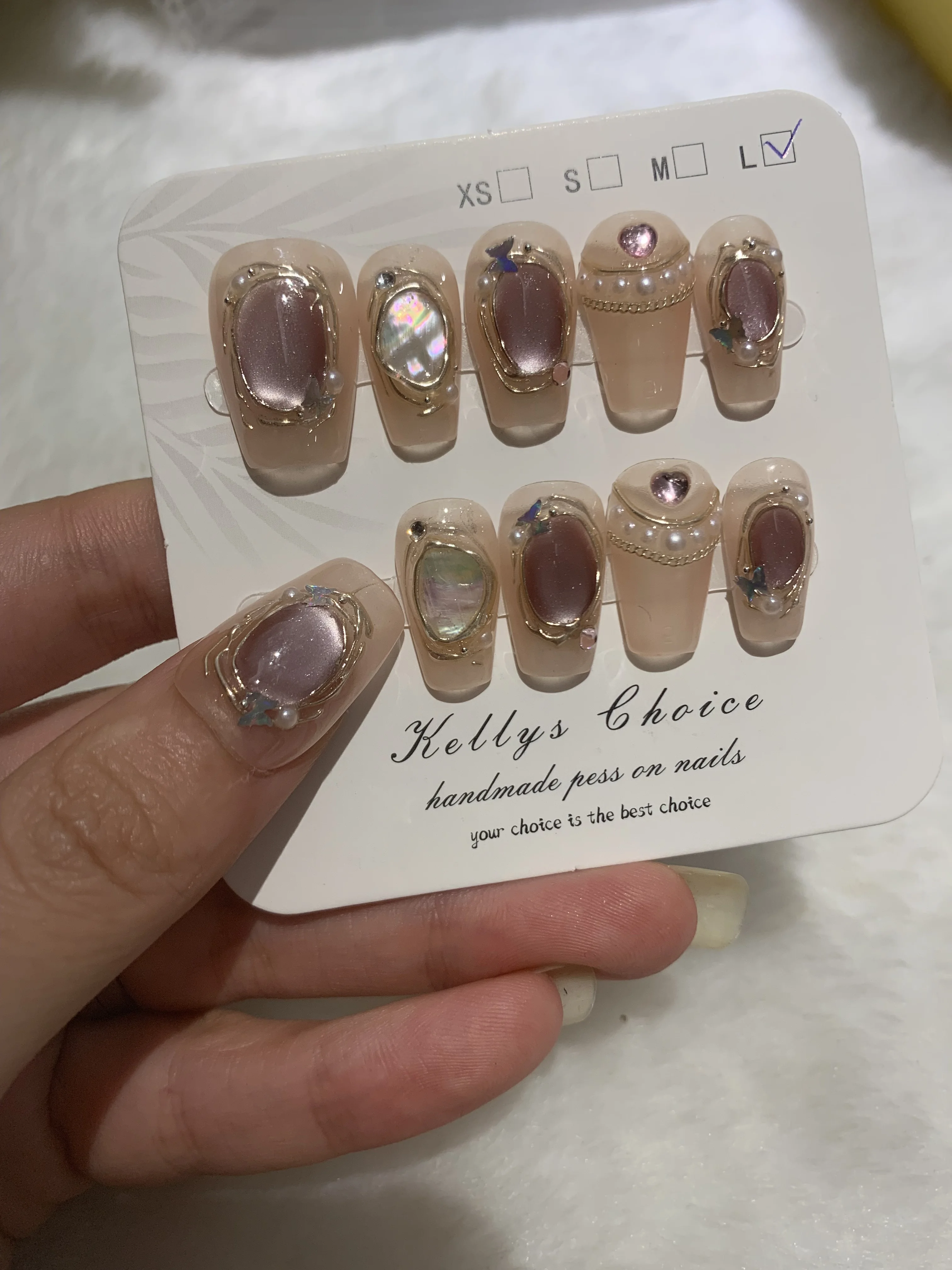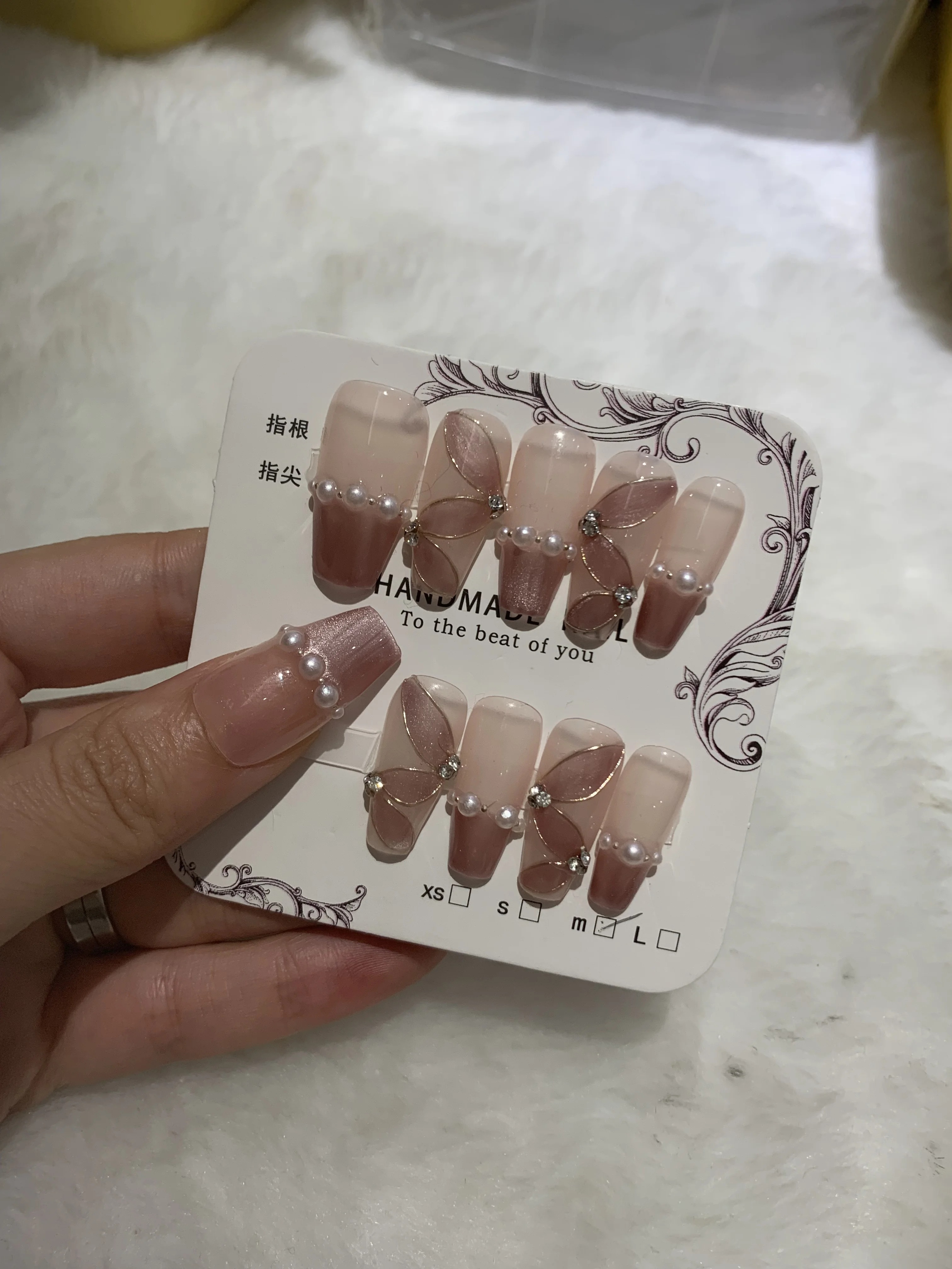Product Name | Handmade Short square 3D gold metal Color pink nude matte with mirror chrome pigment Nail French Art Design ABS Press-On Acrylic |