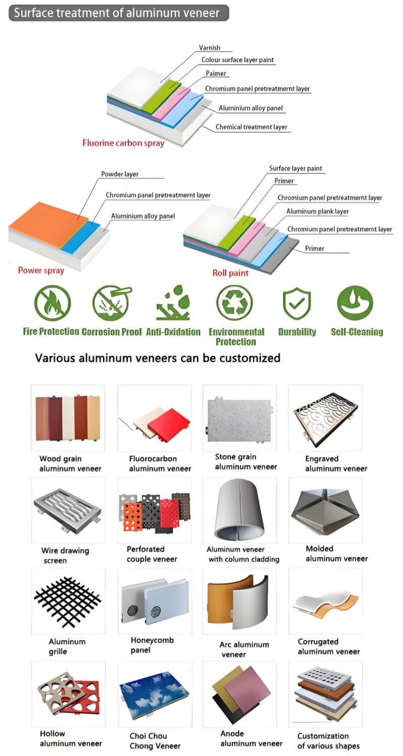 Product Type | Solid Aluminum Panel, Shaped plate (circular panel, double-arc panel, etc.) Carved panels, large louver etc. |