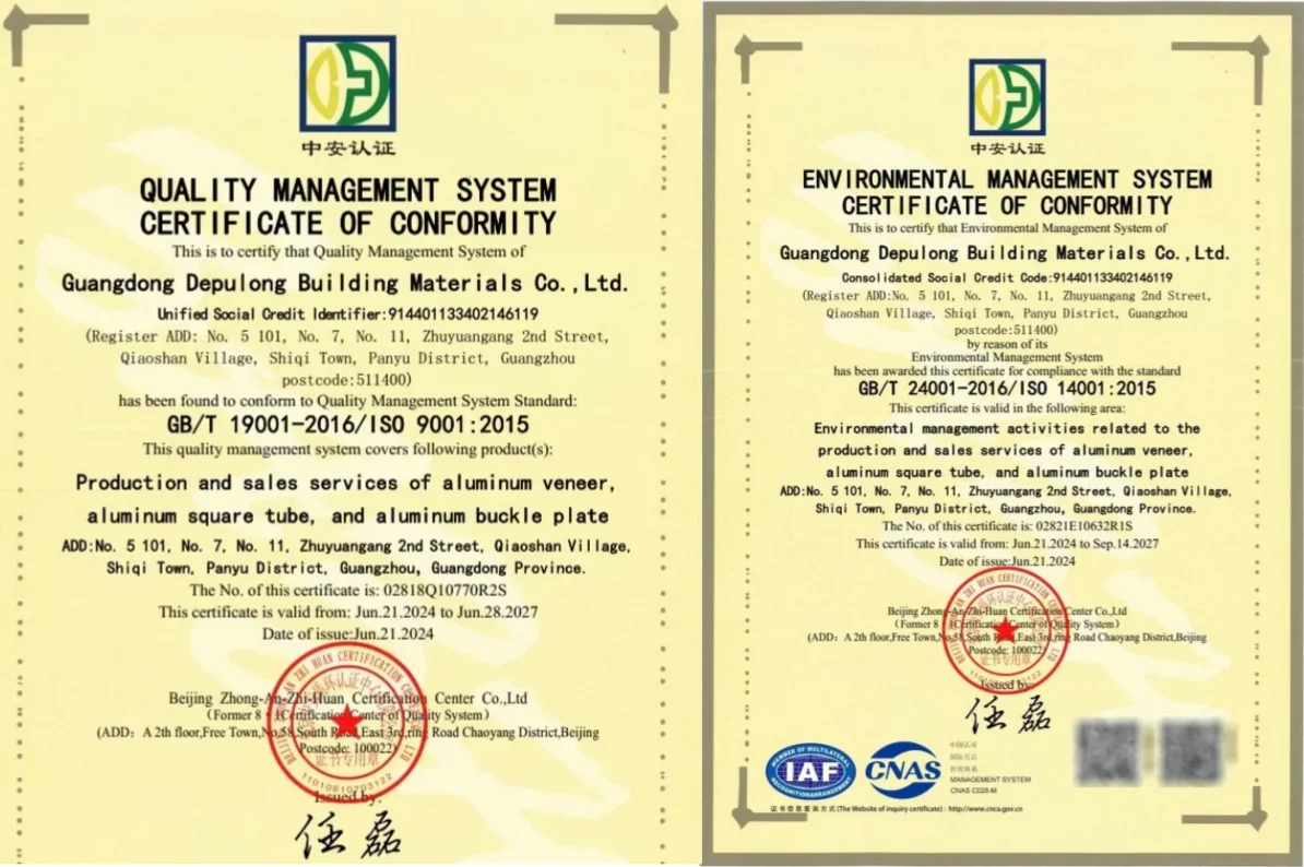 Certificates | SGS,Tuv,ISO 9001:2015,CE,KYNAR 500, Roshs, etc |