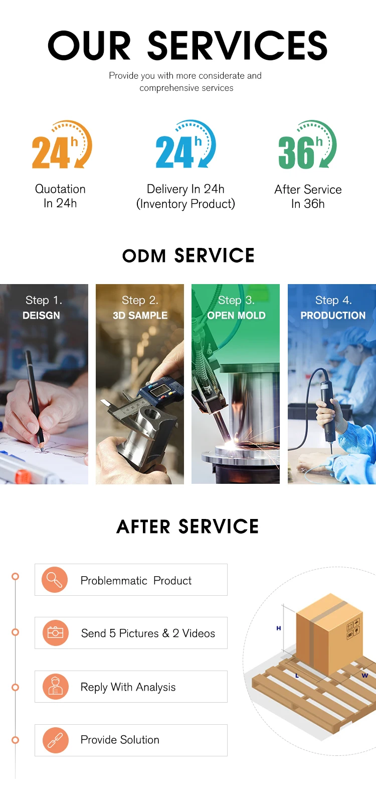 Q: What is your delivery date? A: Our delivery time is about 30-40 days after confirmation.Products in stock can be shipped within a week.