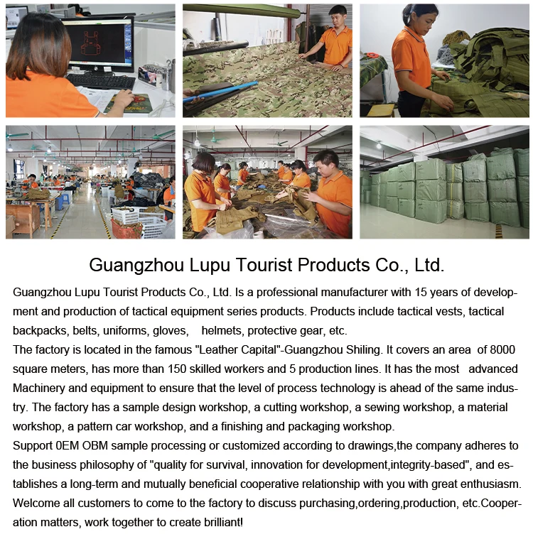 20 years tactical gear experience.Q2:What are your main products?A2:We are professional in manufacturing the tactical gears, such as tactical bag, holster, slings accessory, tactical uniform,tactical vest, boots, tactical backpacks,outdoor cap, tent, elbow pad & knee pad &etc related with the tactical products.