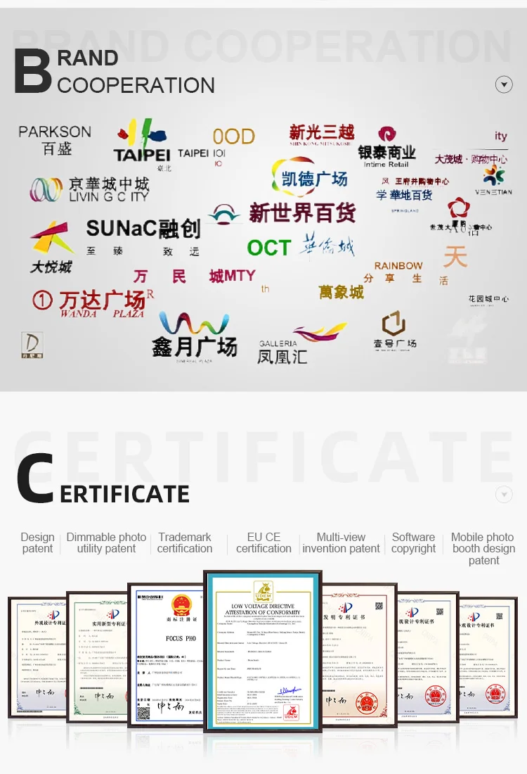 1. What distinguishes you from other companies? Own factory, 15 people software development team, 5 after-sales maintenance technicians. Professional photo software development, continuous iteration of gameplay, functions, system versions, remote upgrades, more professional! 2000 stores operation experience, site selection, decoration, operation guidance.