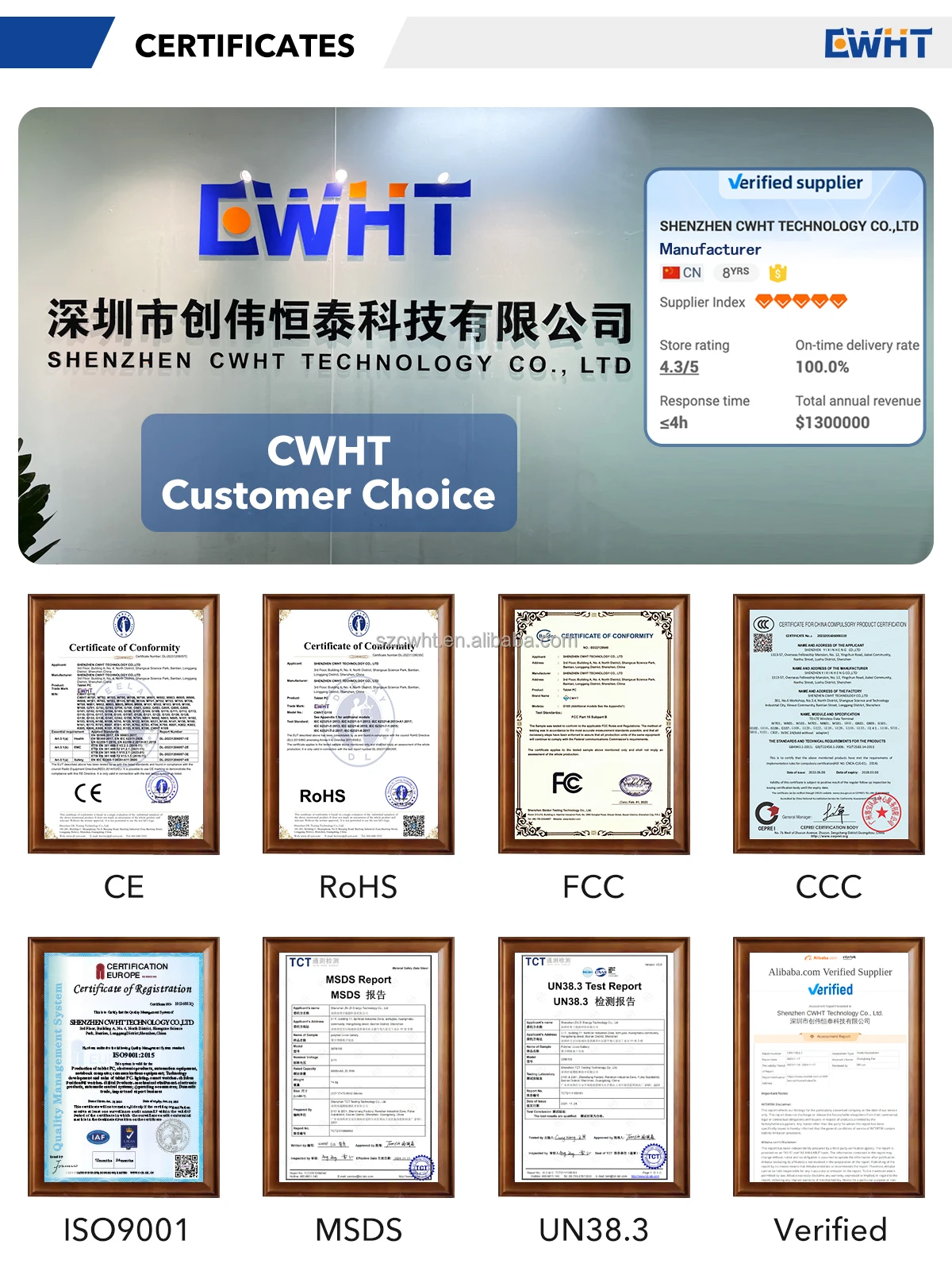 CWHT | 100% New Material with AAA + Level quality + 1 year Warranty |